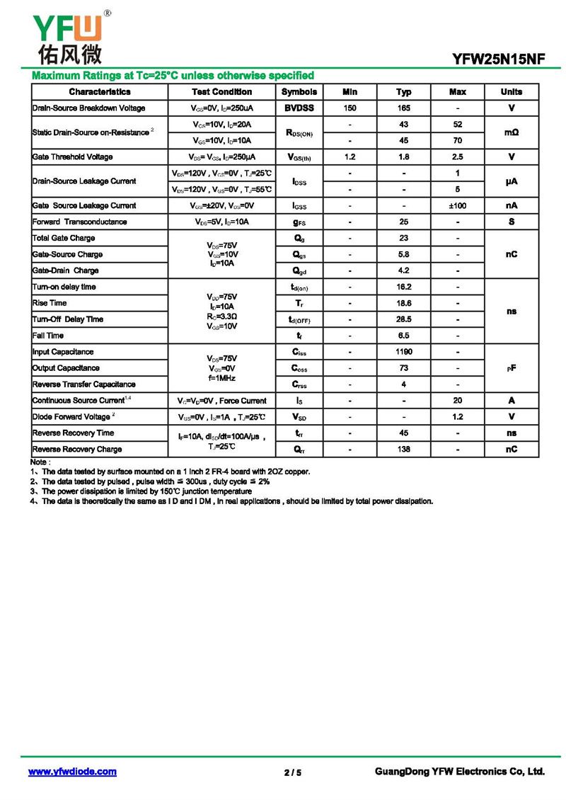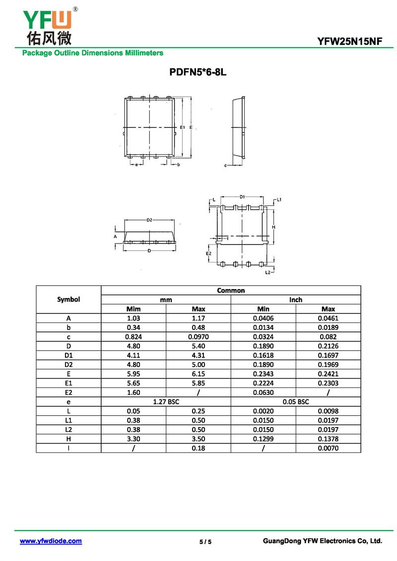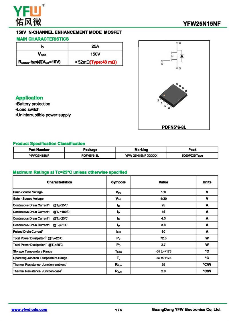場效應管YFW25N15NF 規(guī)格書_價格_PDF手冊-廣東佑風微原廠YFW25N15NF PDFN5*6-8L_(YFW佑風微)品牌