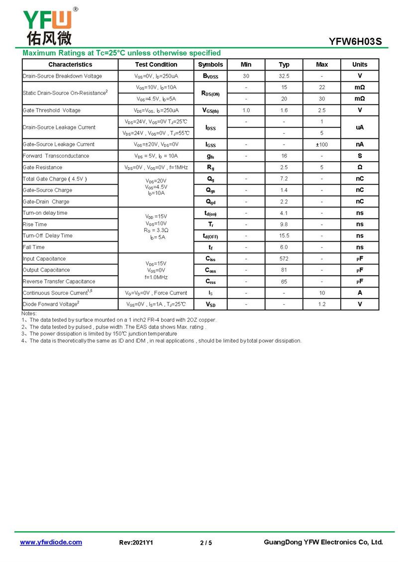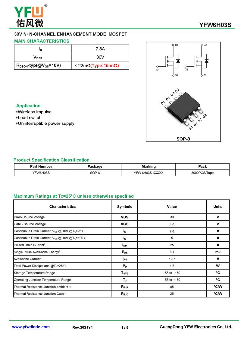 場效應管YFW6H03S 規格書_價格_PDF手冊-廣東佑風微原廠YFW6H03S SOP-8 _(YFW佑風微)品牌