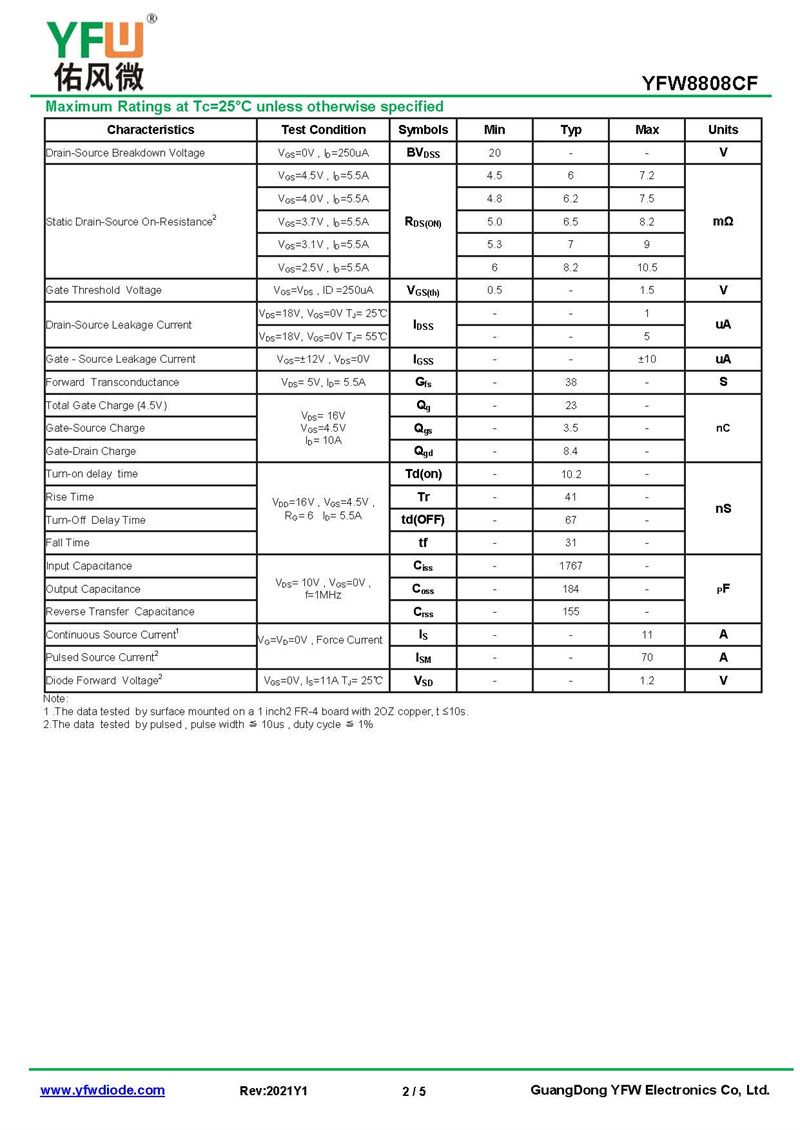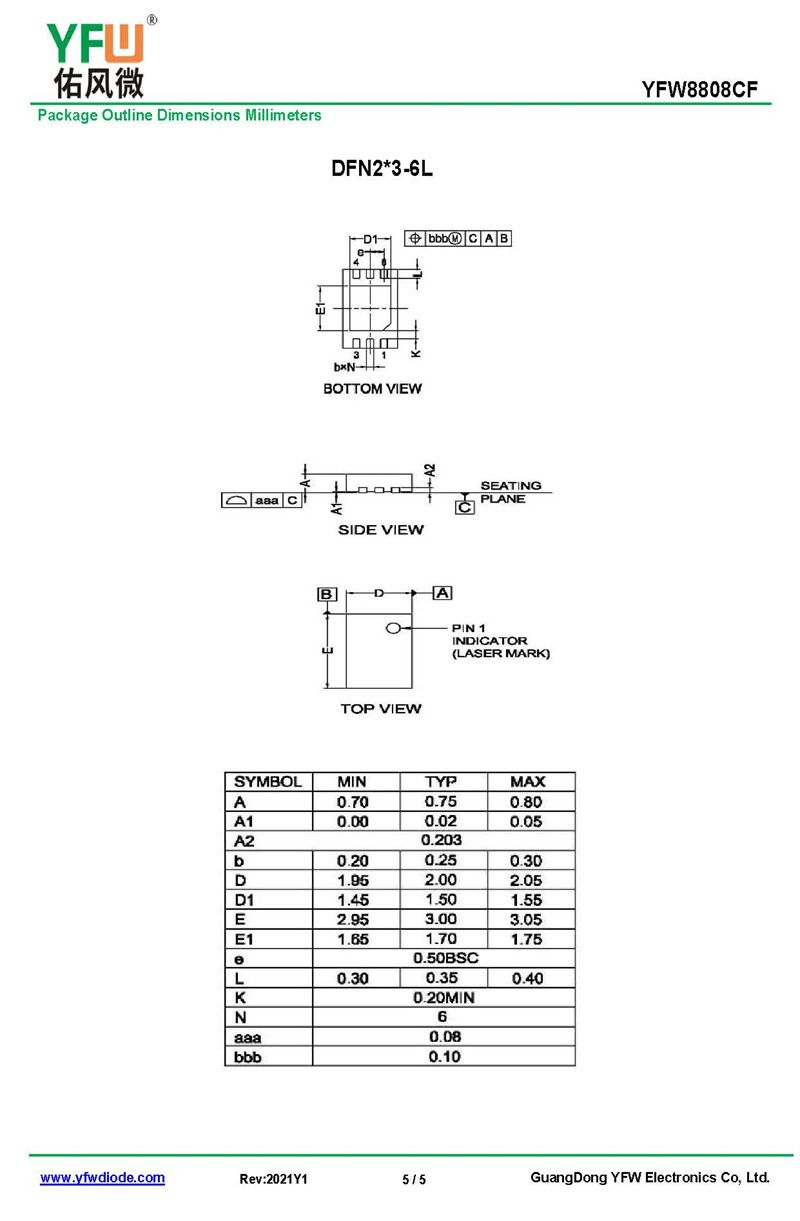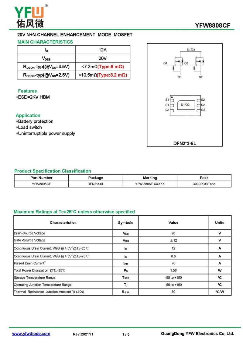 場效應管YFW8808CF 規格書_價格_PDF手冊-廣東佑風微原廠YFW8808CF SOT2*3-6L _(YFW佑風微)品牌
