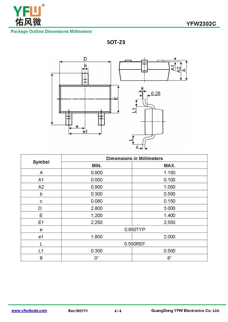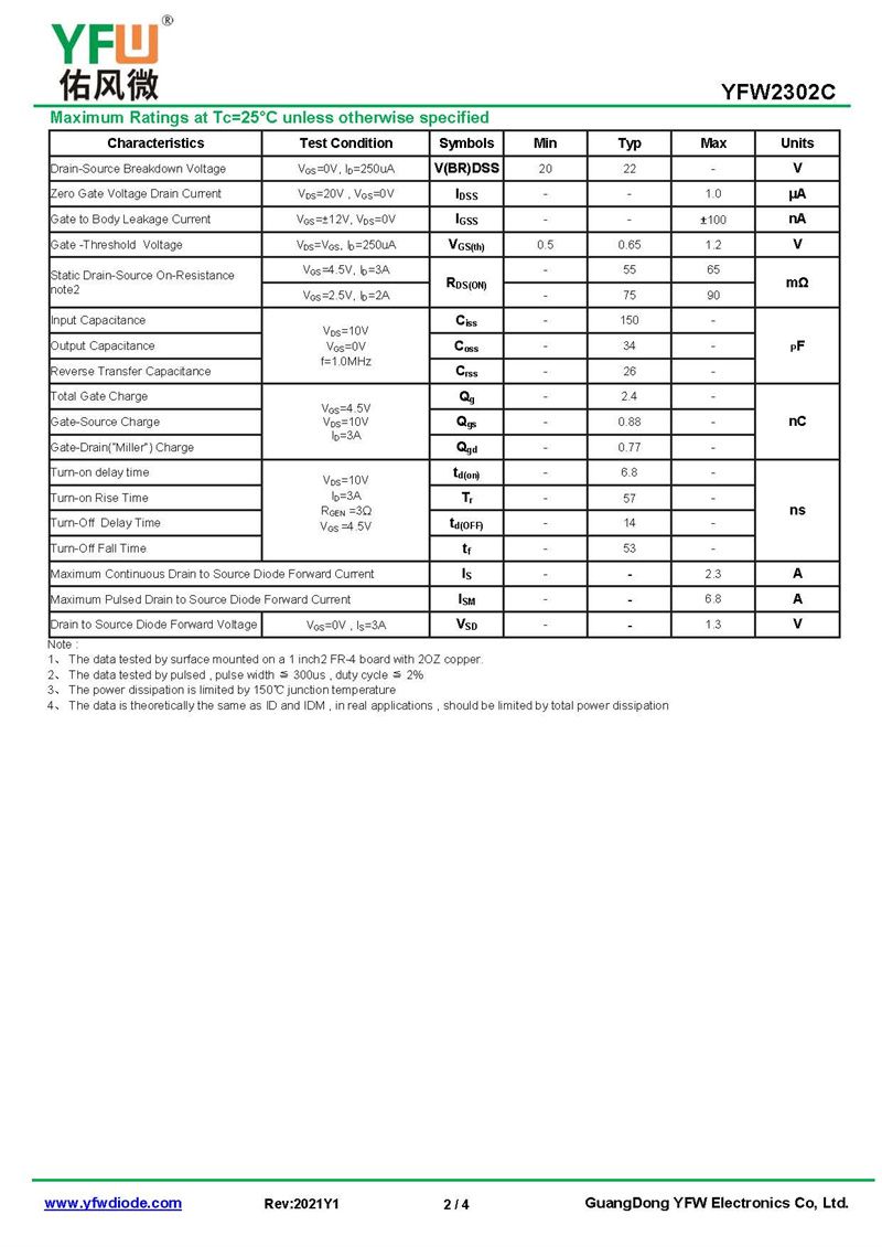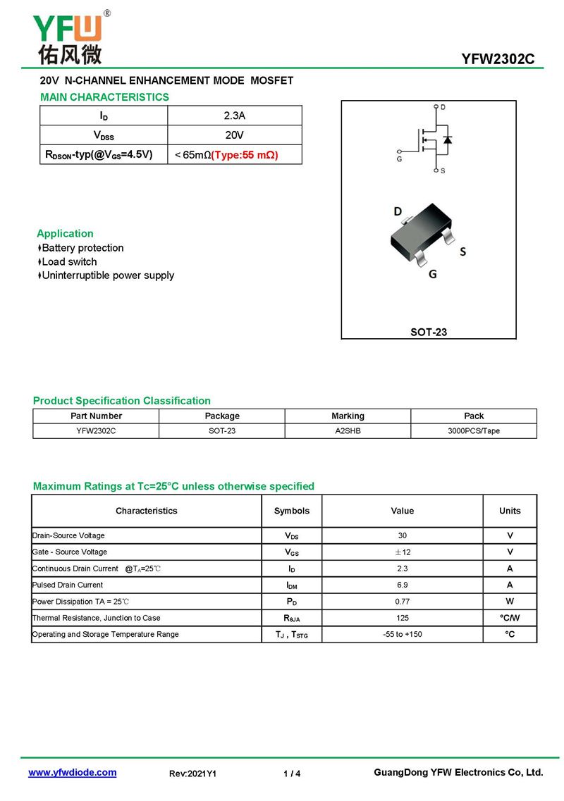 場效應管YFW2302D 規格書_價格_PDF手冊-廣東佑風微原廠YFW2302D SOT-23 _(YFW佑風微)品牌