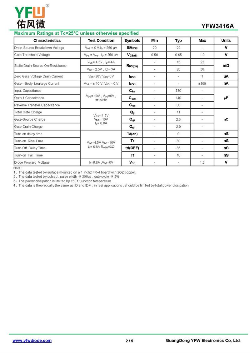 場效應管YFW3416 規格書_價格_PDF手冊-廣東佑風微原廠YFW3416 SOT-23 _(YFW佑風微)品牌