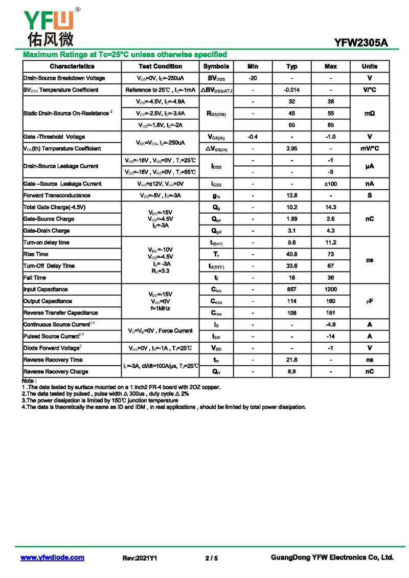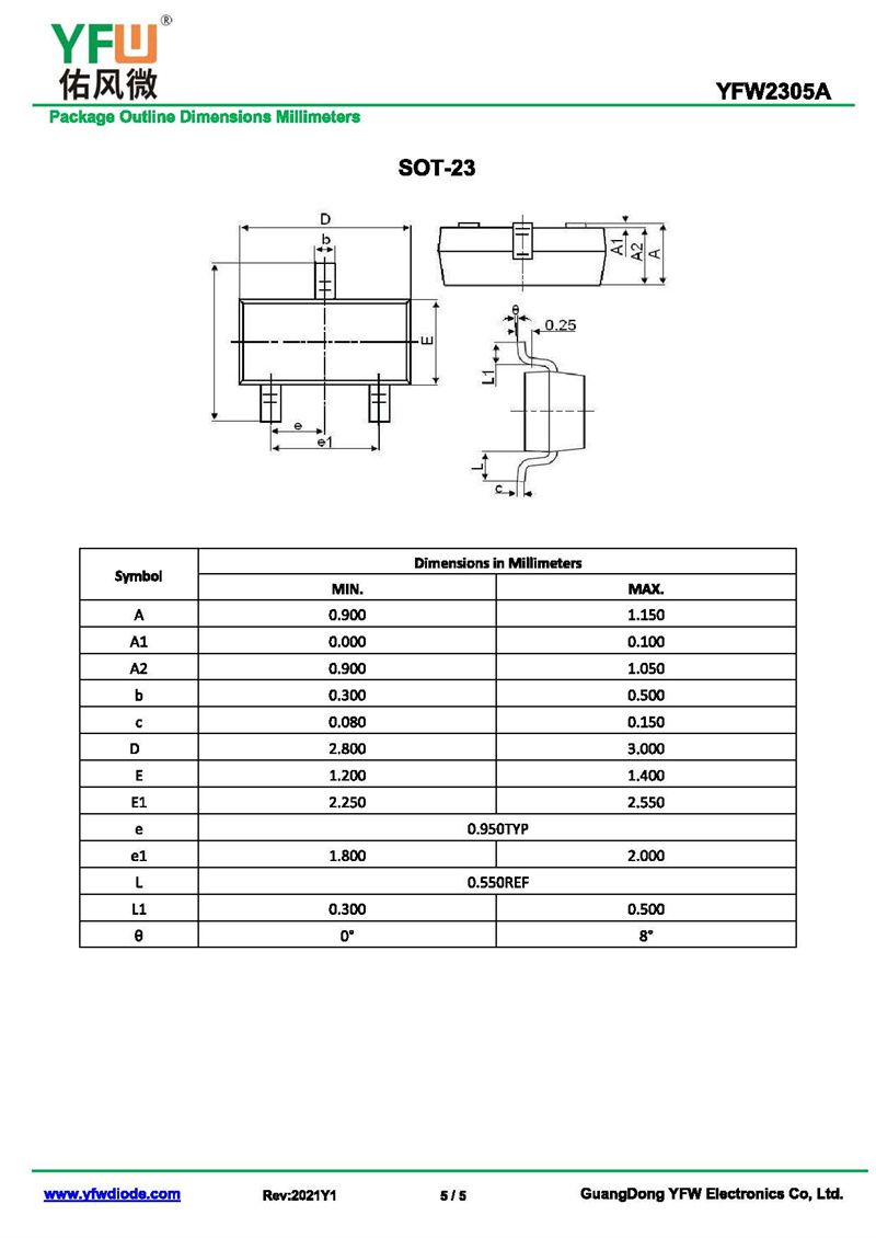 場效應管YFW2305 規格書_價格_PDF手冊-廣東佑風微原廠YFW2305 SOT-23 _(YFW佑風微)品牌