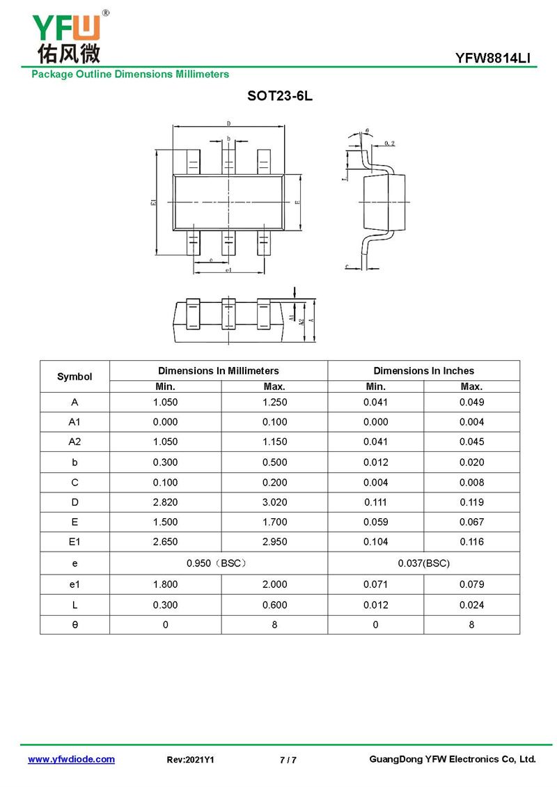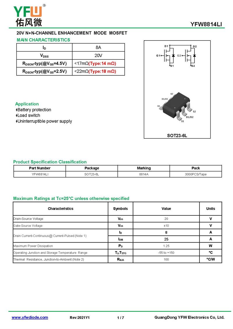 場效應管YFW8814LI 規格書_價格_PDF手冊-廣東佑風微原廠YFW8814LI SOT23-6L _(YFW佑風微)品牌