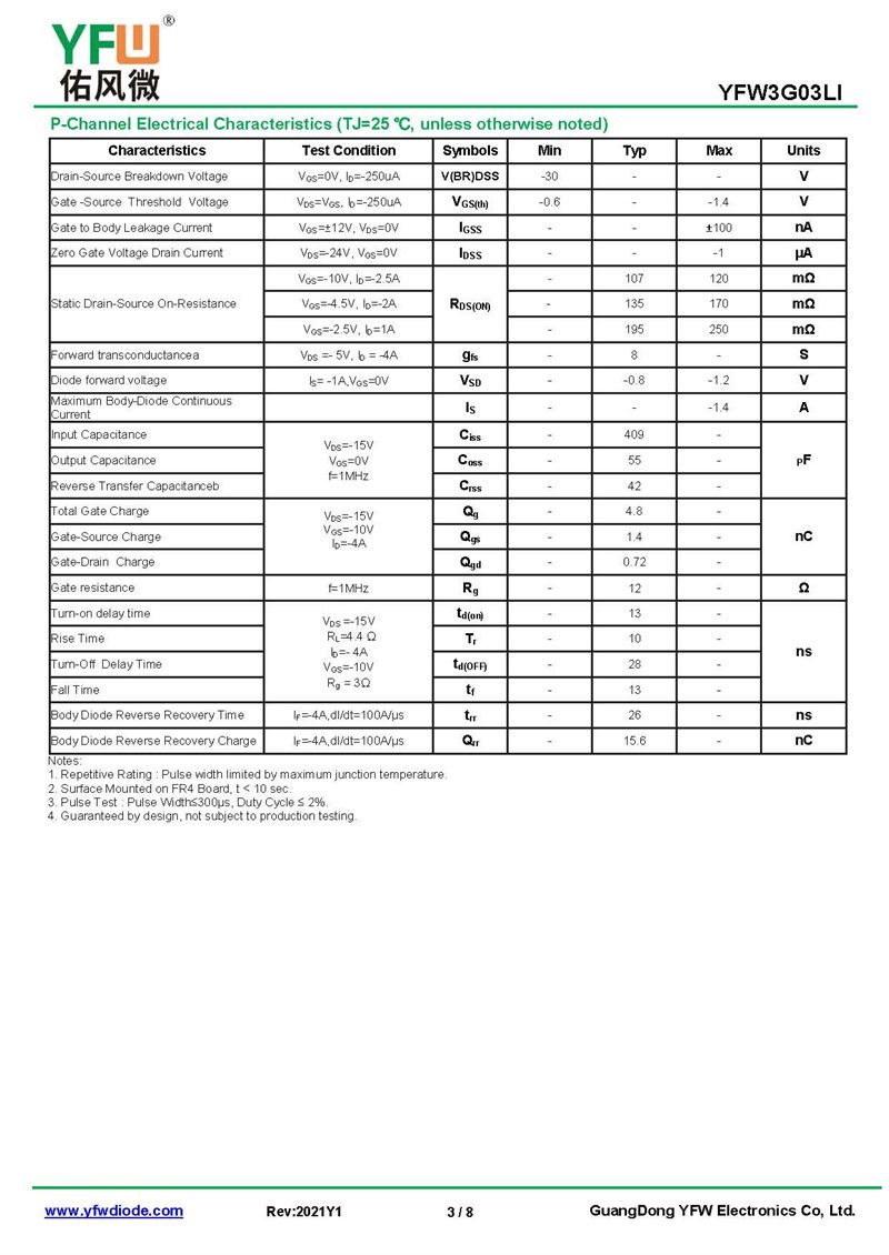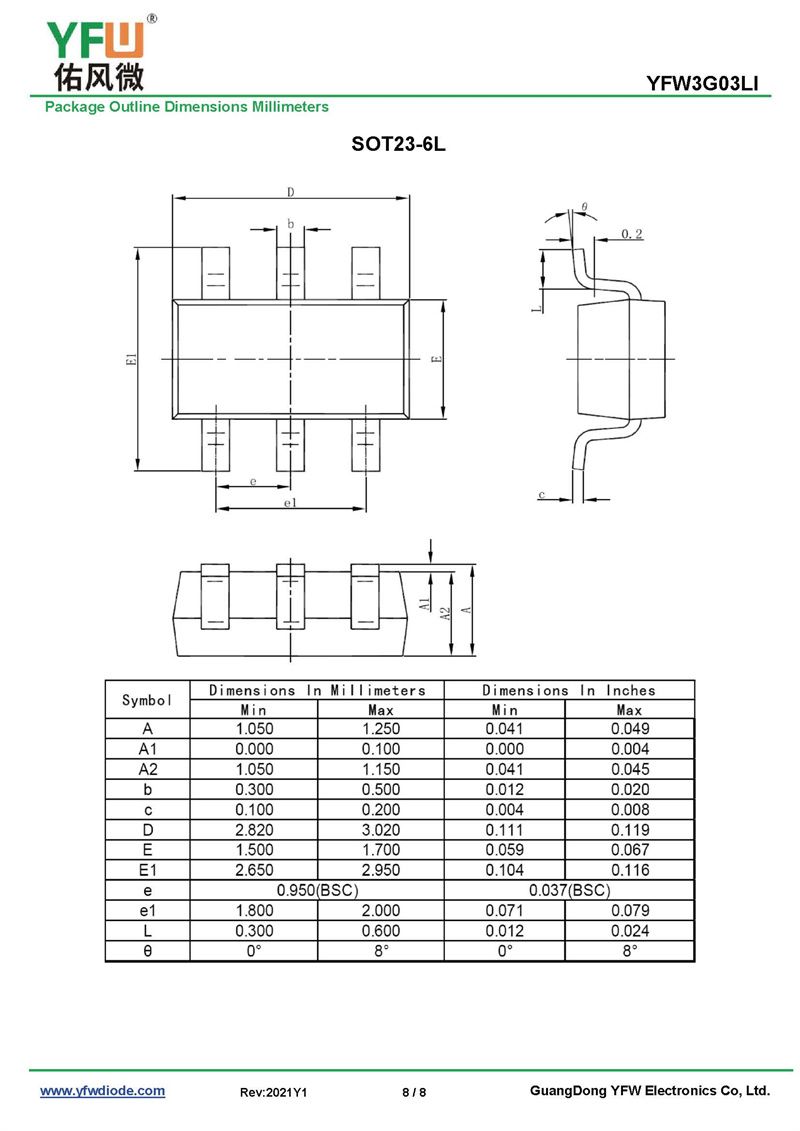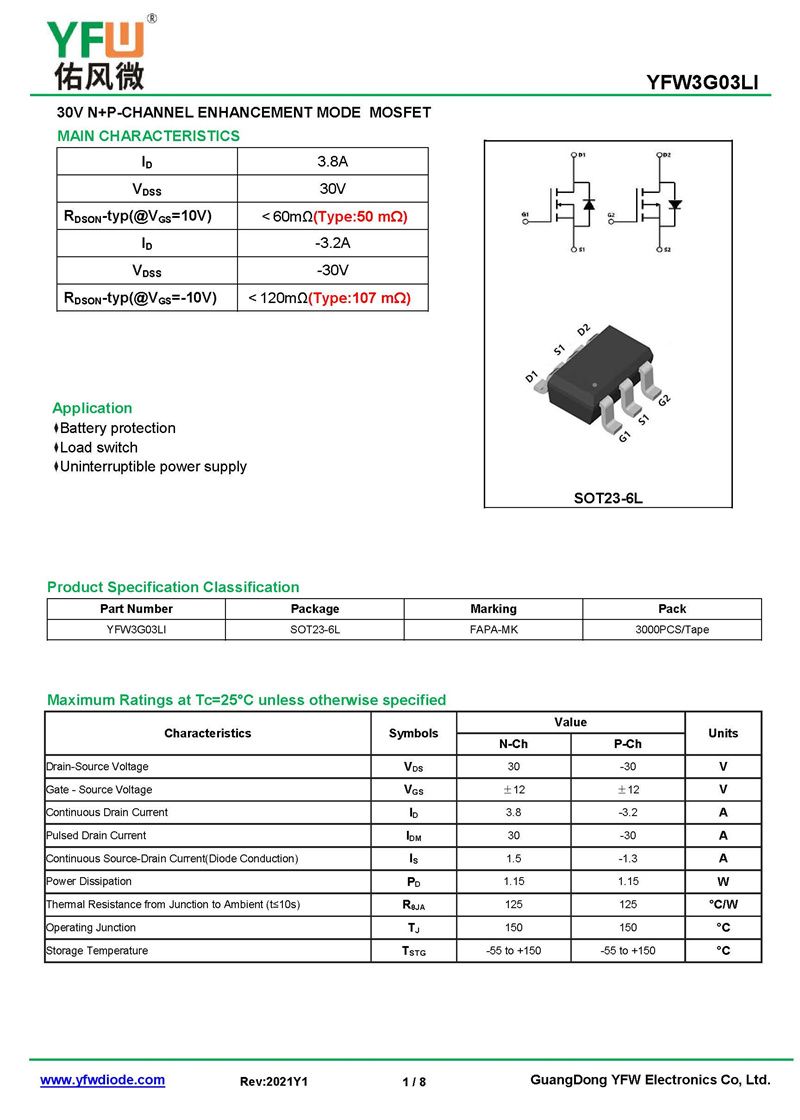 場效應管YFW3G03LI 規格書_價格_PDF手冊-廣東佑風微原廠YFW3G03LI SOT23-6L _(YFW佑風微)品牌