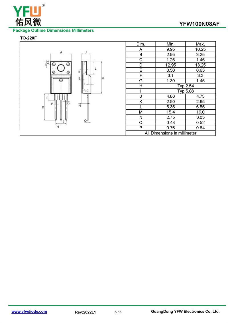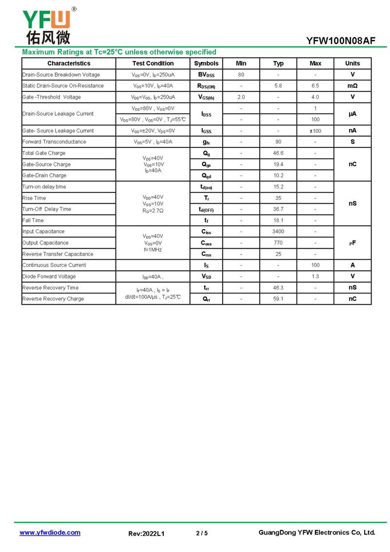 場效應管YFW100N08AF 規格書_價格_PDF手冊-廣東佑風微原廠YFW100N08AF TO-220F _(YFW佑風微)品牌