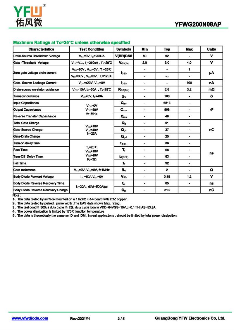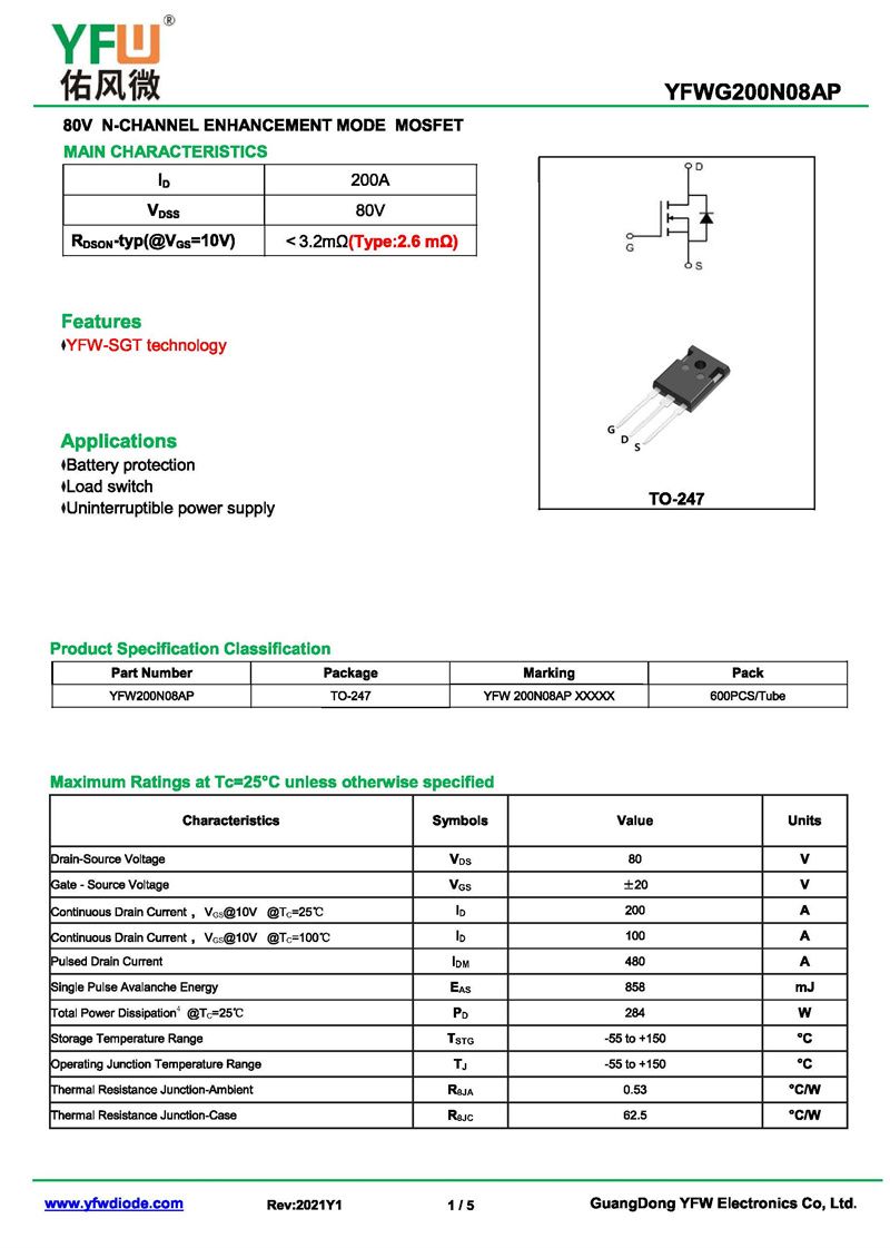 場效應管YFWG200N08AP 規(guī)格書_價格_PDF手冊-廣東佑風微原廠YFWG200N08AP TO-247_(YFW佑風微)品牌