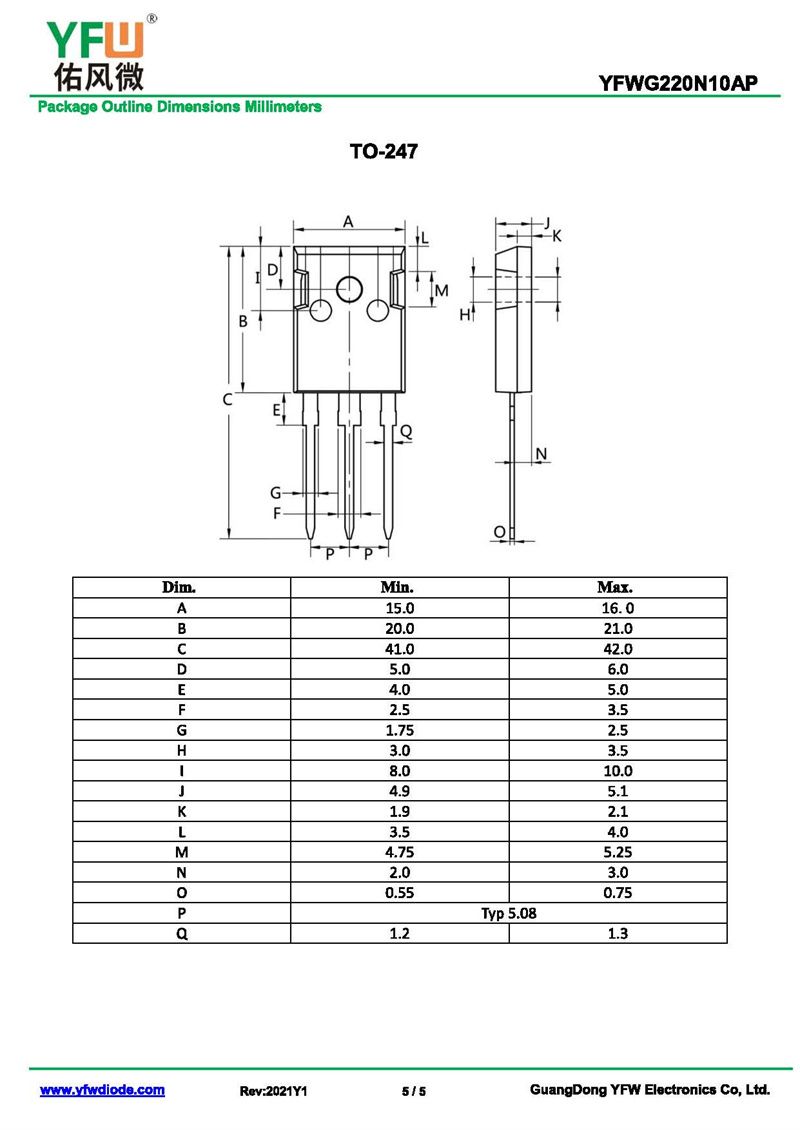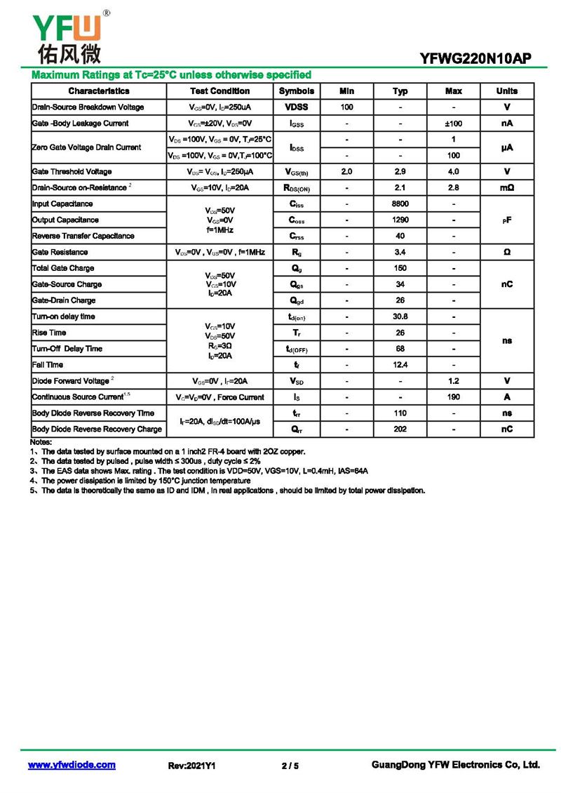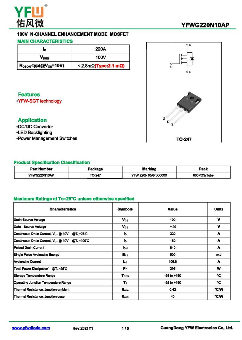 場效應(yīng)管YFWG220N10AP 規(guī)格書_價格_PDF手冊-廣東佑風(fēng)微原廠YFWG220N10AP TO-247_(YFW佑風(fēng)微)品牌