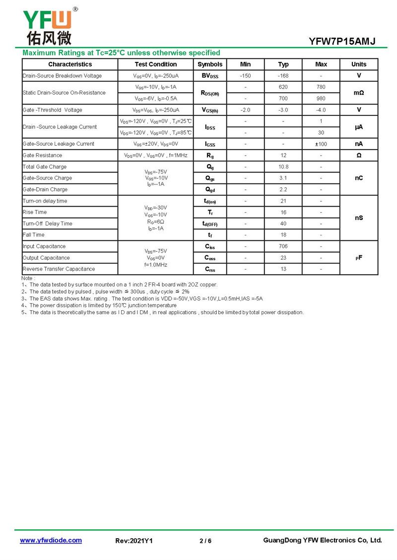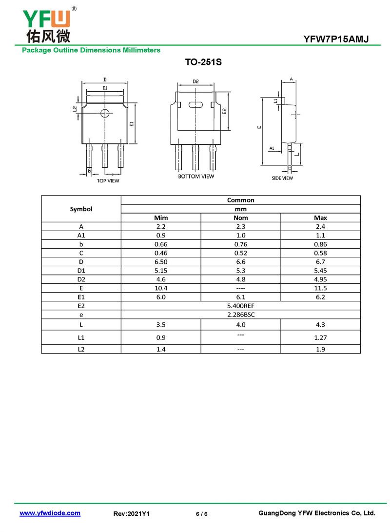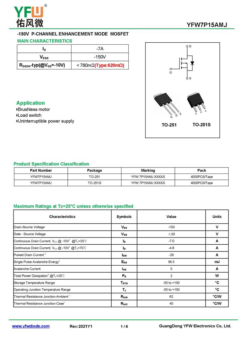 場效應管YFW7P15AMJ 規格書_價格_PDF手冊-廣東佑風微原廠YFW7P15AMJ TO-251_(YFW佑風微)品牌