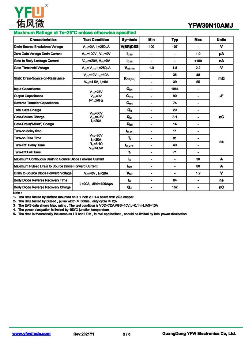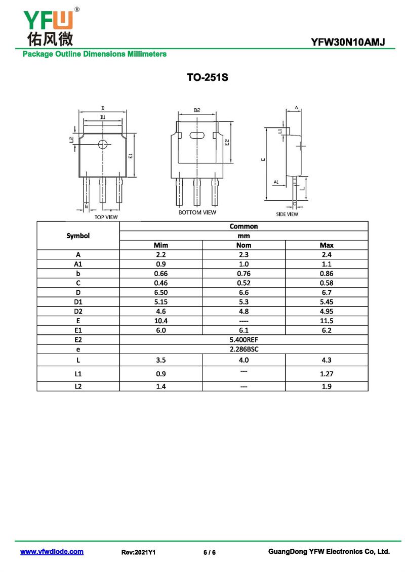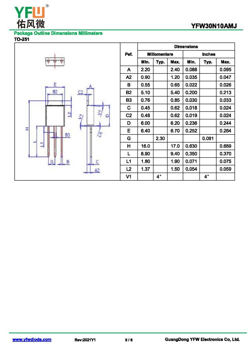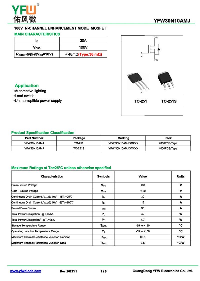 場效應管YFW30N10AMJ 規格書_價格_PDF手冊-廣東佑風微原廠YFW30N10AMJ TO-251_(YFW佑風微)品牌