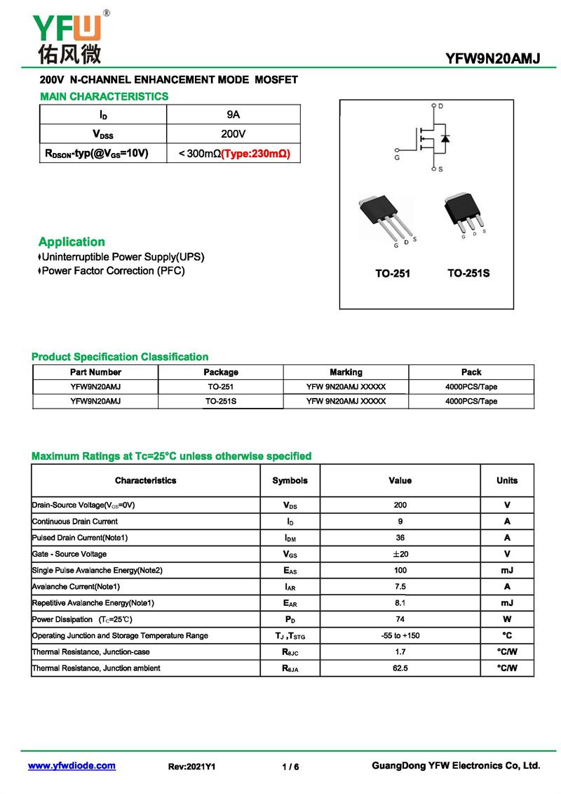 場效應(yīng)管YFW9N20AMJ 規(guī)格書_價(jià)格_PDF手冊-廣東佑風(fēng)微原廠YFW9N20AMJ TO-251_(YFW佑風(fēng)微)品牌