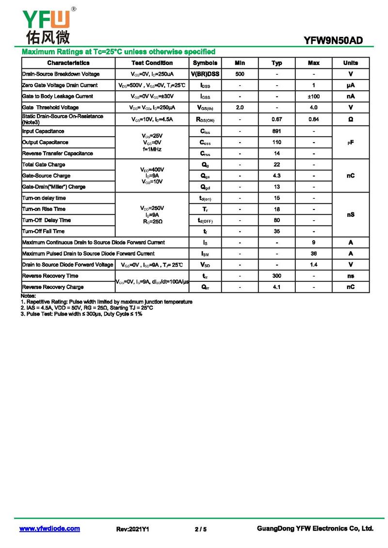 場效應管YFW9N50AD 規格書_價格_PDF手冊-廣東佑風微原廠YFW9N50AD TO-252_(YFW佑風微)品牌