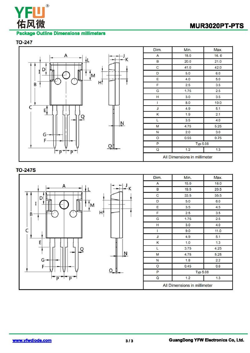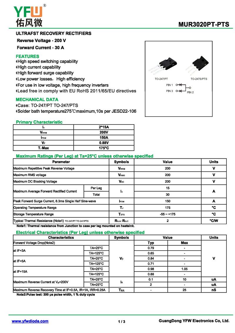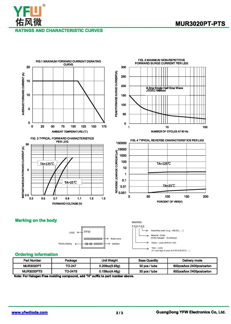 超快恢復(fù)二極管MUR3020PT&MUR3020PTS 規(guī)格書_價格_PDF手冊-廣東佑風(fēng)微原廠MUR3020PT&MUR3020PTS TO-247_(YFW佑風(fēng)微)品牌