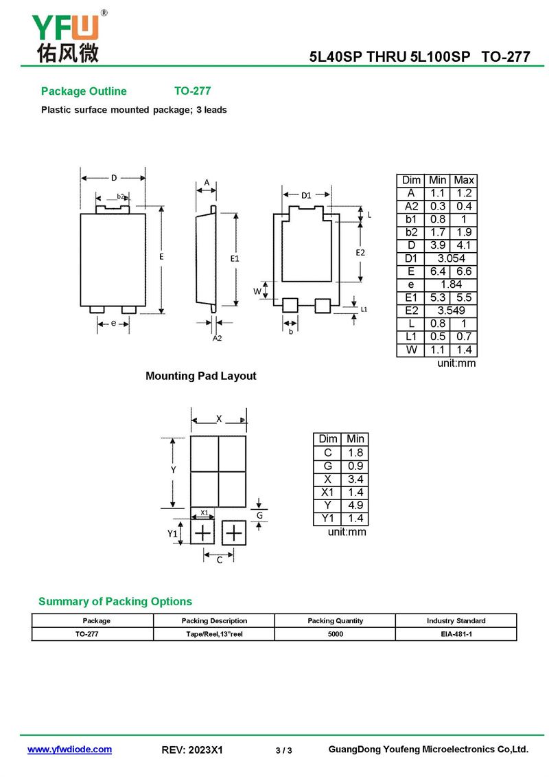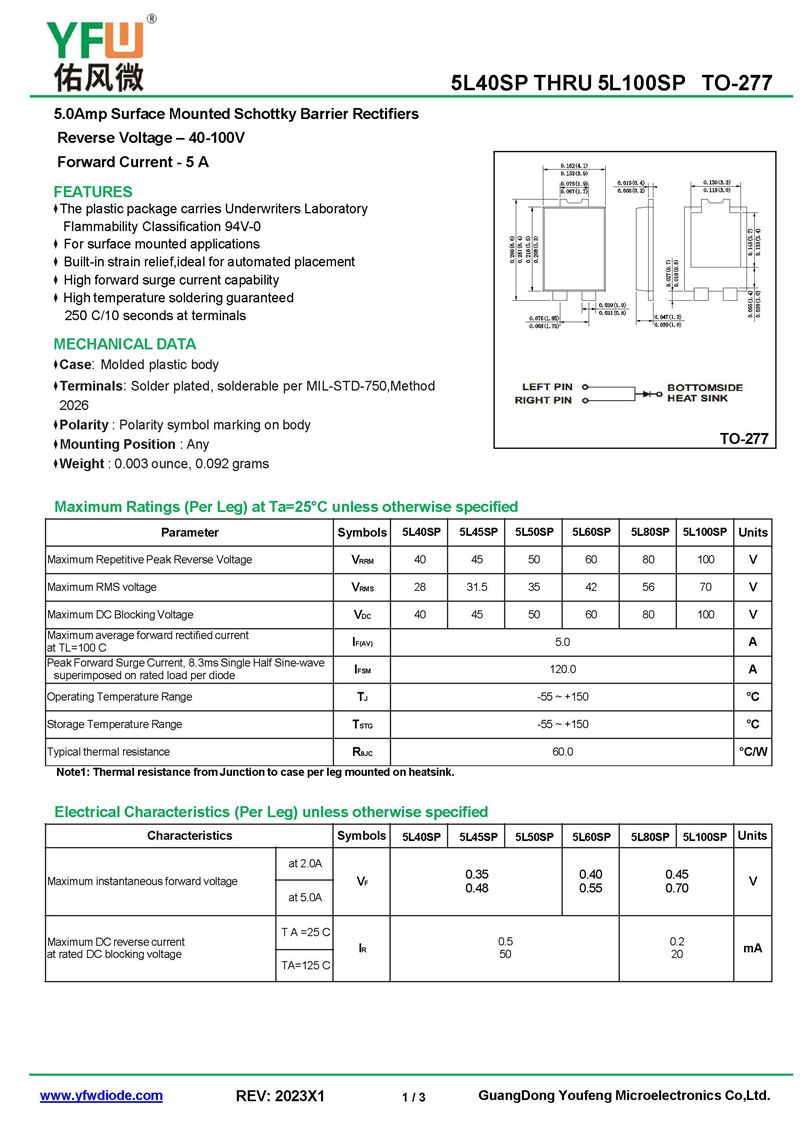 低正向肖特基二極管5L45SP 規(guī)格書_價格_PDF手冊-廣東佑風(fēng)微原廠5L45SP TO-277_(YFW佑風(fēng)微)品牌