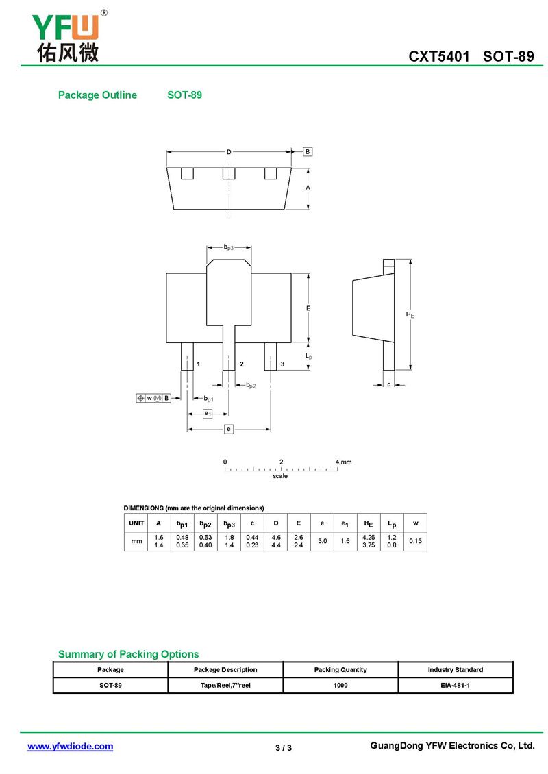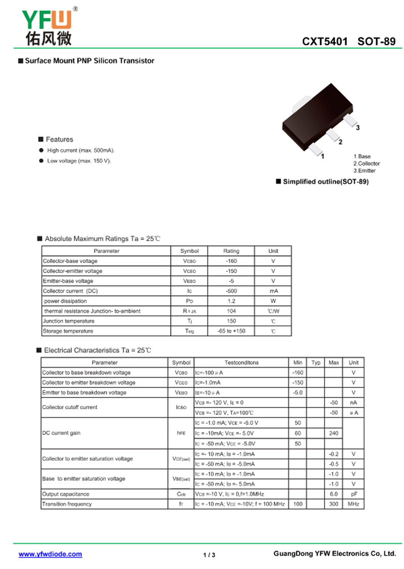 晶體管CXT5401 規格書_價格_PDF手冊-廣東佑風微原廠CXT5401 SOT-89_(YFW佑風微)品牌