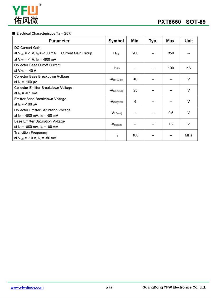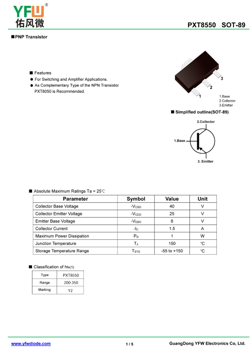 晶體管PXT8550 規格書_價格_PDF手冊-廣東佑風微原廠PXT8550 SOT-89_(YFW佑風微)品牌