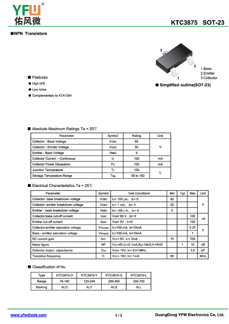 晶體管KTC3875-O 規(guī)格書_價(jià)格_PDF手冊(cè)-廣東佑風(fēng)微原廠KTC3875-O SOT-23_(YFW佑風(fēng)微)品牌