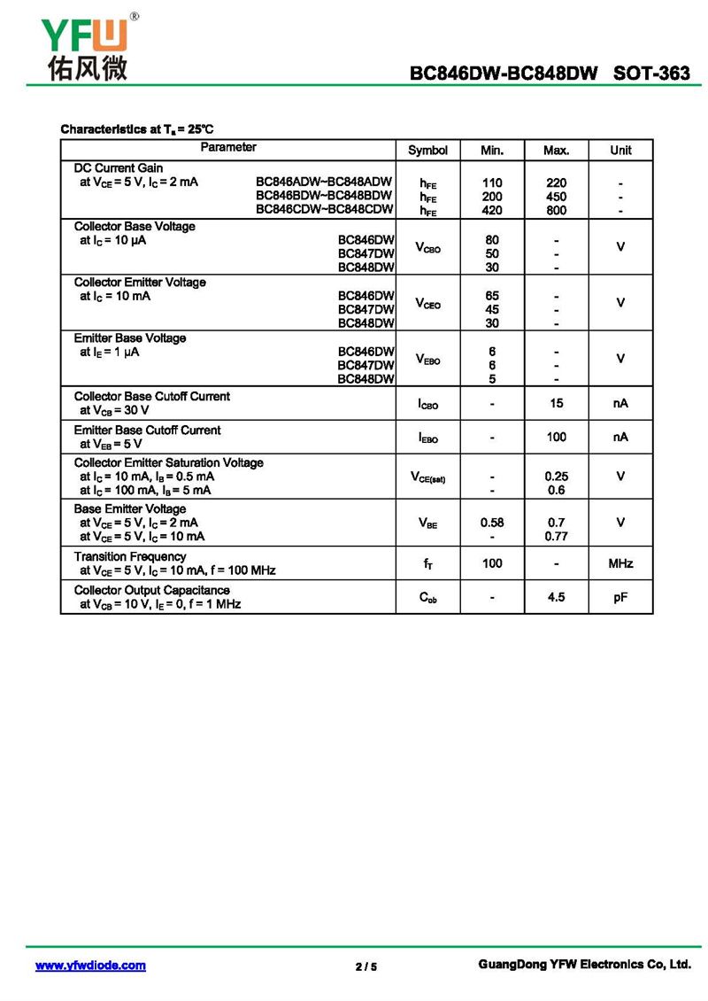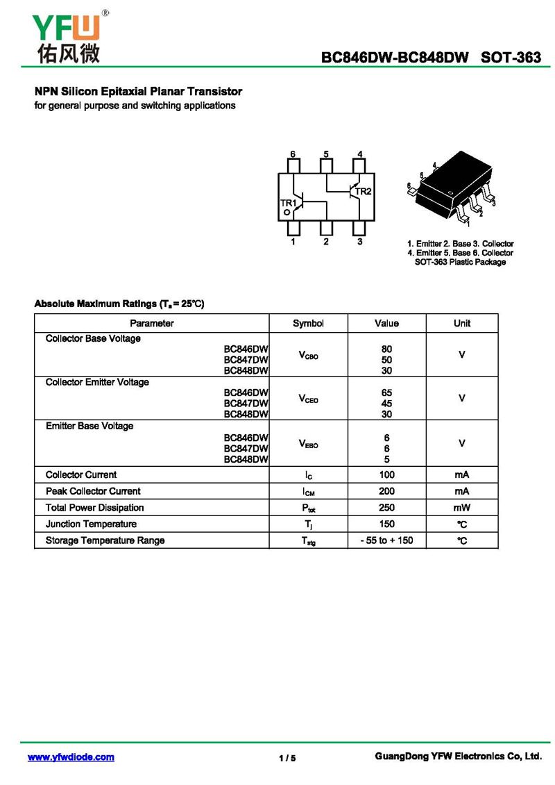 晶體管BC858DW 規格書_價格_PDF手冊-廣東佑風微原廠BC858DW SOT-363_(YFW佑風微)品牌