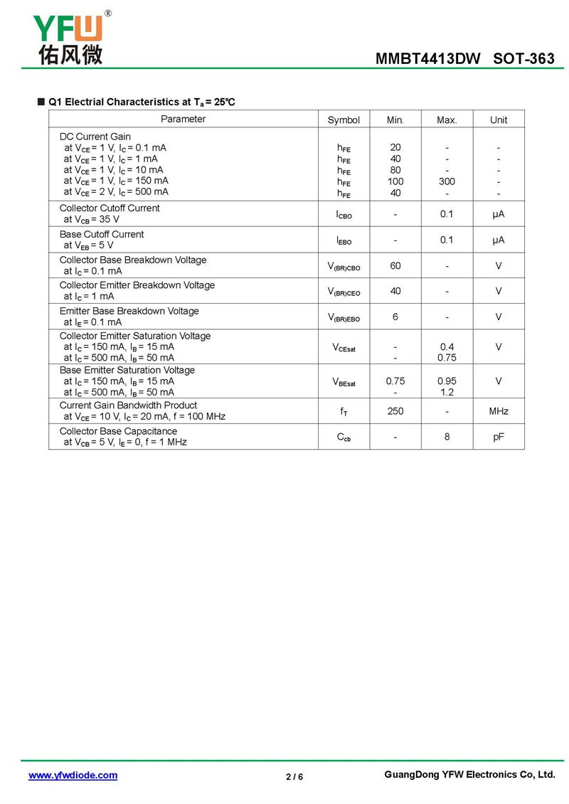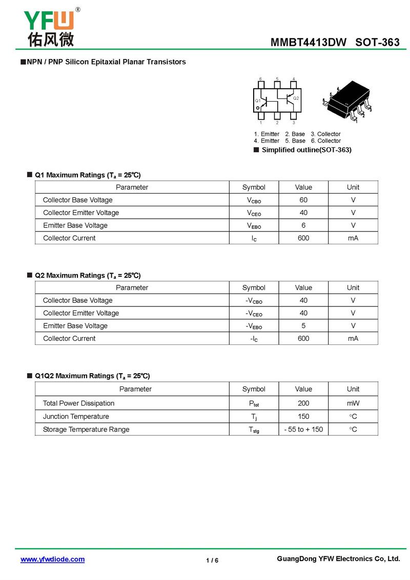晶體管MMBT4413DW 規(guī)格書_價格_PDF手冊-廣東佑風(fēng)微原廠MMBT4413DW SOT-363_(YFW佑風(fēng)微)品牌