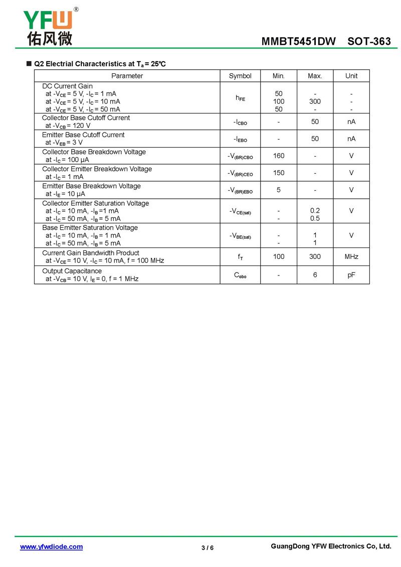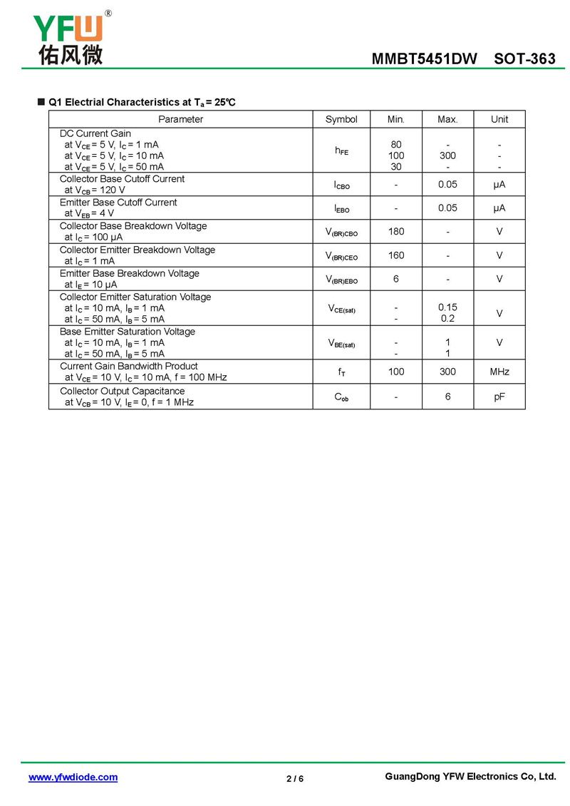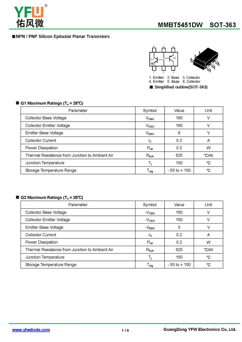 晶體管MMBT5451DW 規(guī)格書_價格_PDF手冊-廣東佑風微原廠MMBT5451DW SOT-363_(YFW佑風微)品牌