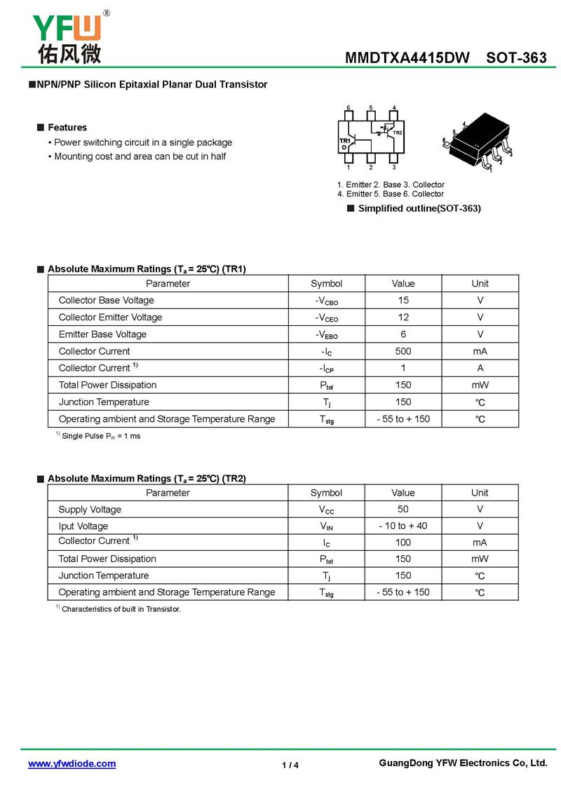 晶體管MMDTXA4415DW 規(guī)格書_價(jià)格_PDF手冊(cè)-廣東佑風(fēng)微原廠MMDTXA4415DW SOT-363_(YFW佑風(fēng)微)品牌