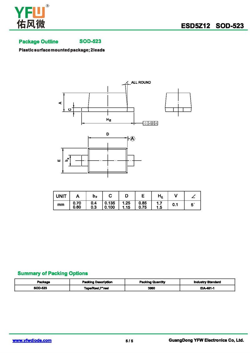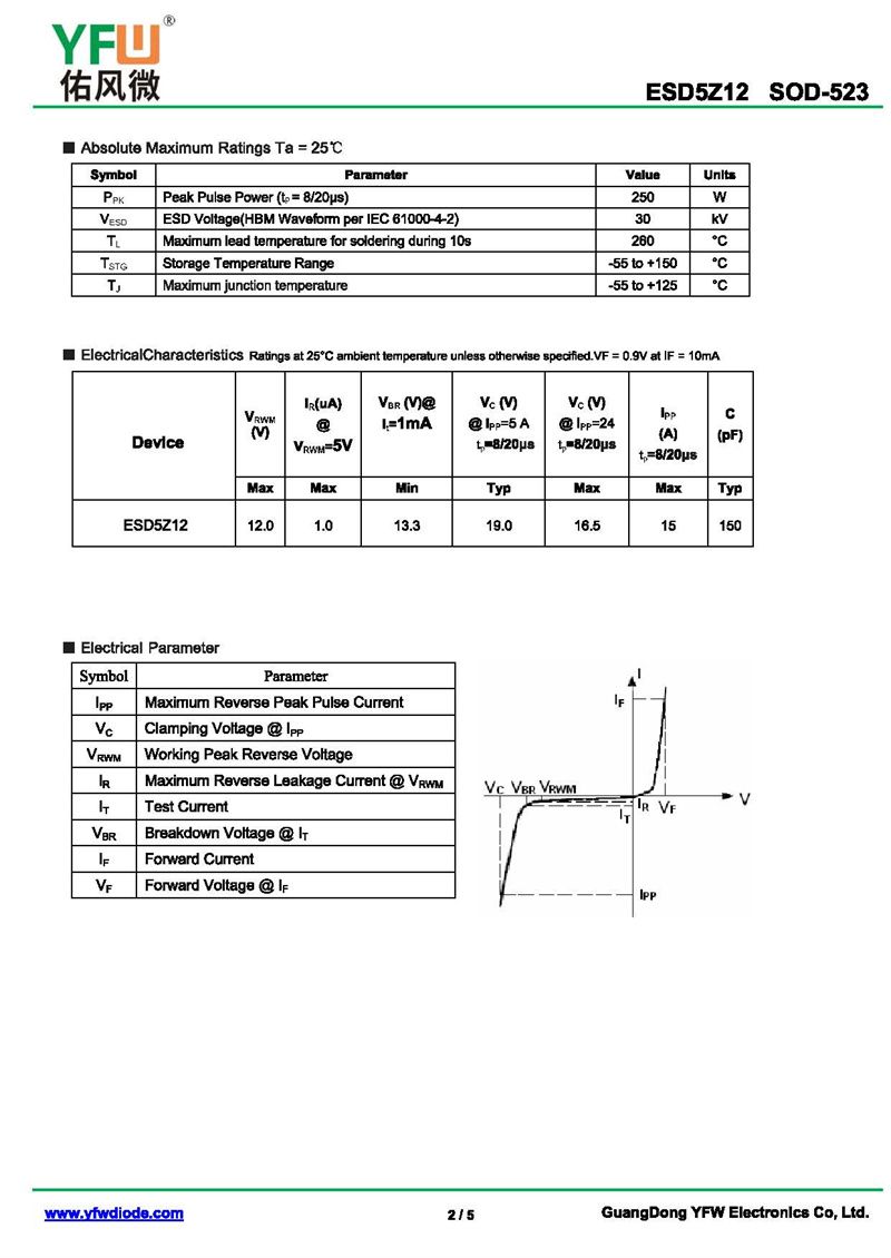 靜電保護二極管ESD5Z12 規格書_價格_PDF手冊-廣東佑風微原廠ESD5Z12 SOD-523_(YFW佑風微)品牌