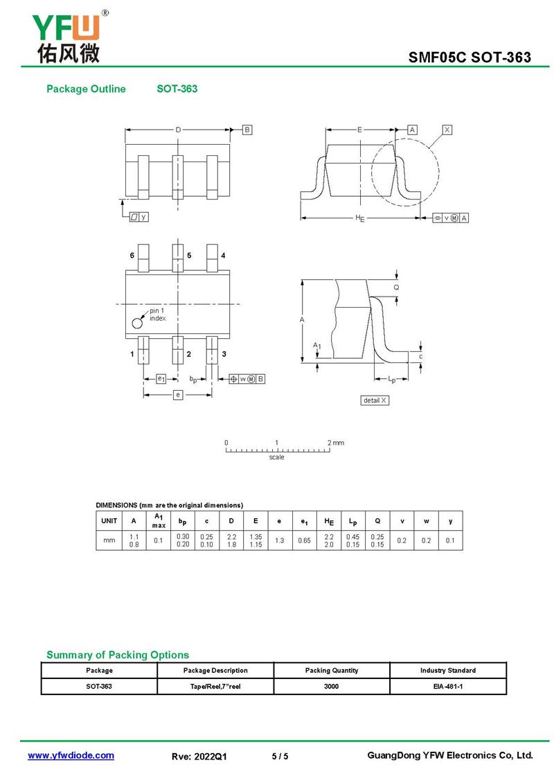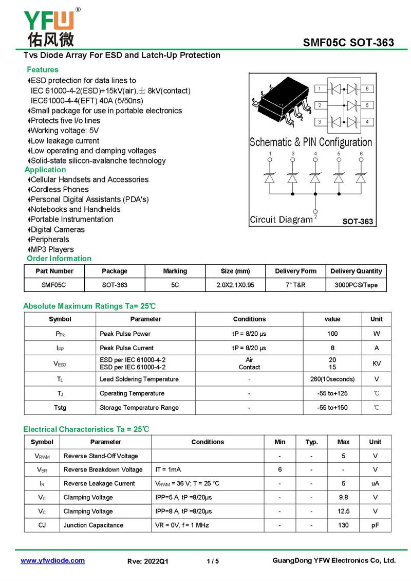 靜電保護二極管SMF05C 規格書_價格_PDF手冊-廣東佑風微原廠SMF05C SOT-363_(YFW佑風微)品牌