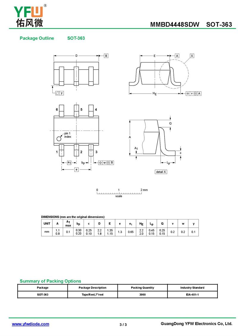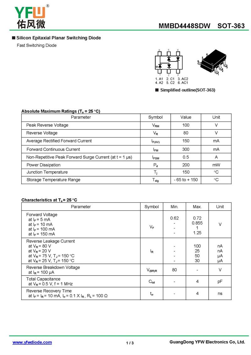 開關(guān)二極管MMBD4448SDW 規(guī)格書_價格_PDF手冊-廣東佑風(fēng)微原廠MMBD4448SDW SOT-363_(YFW佑風(fēng)微)品牌