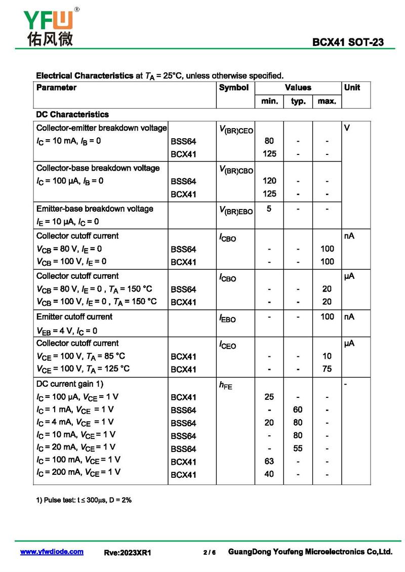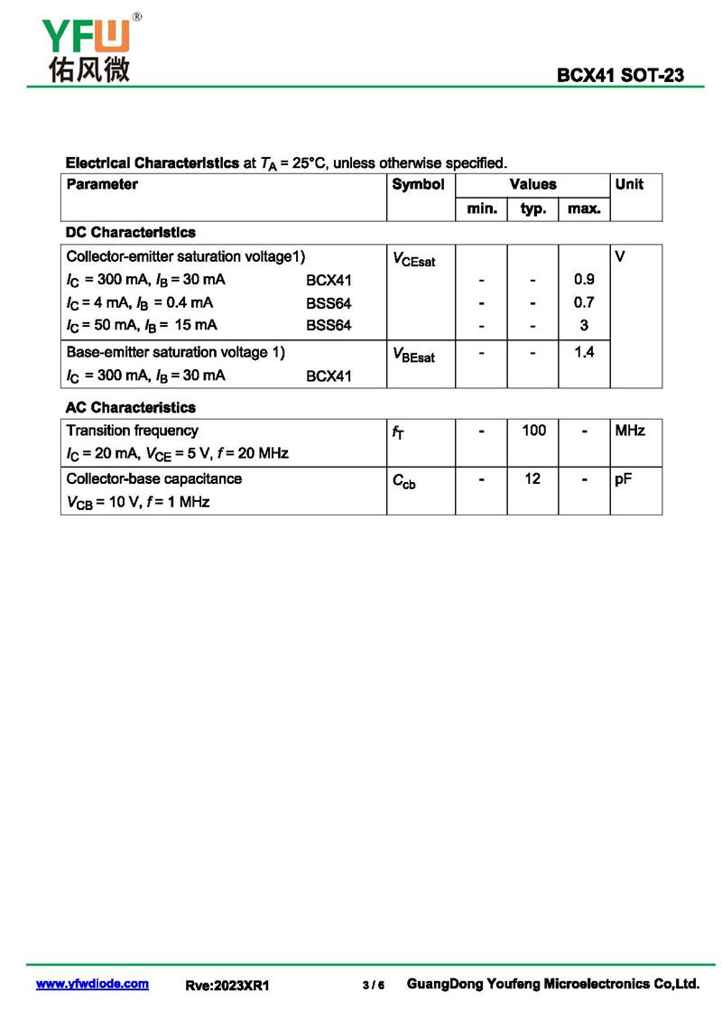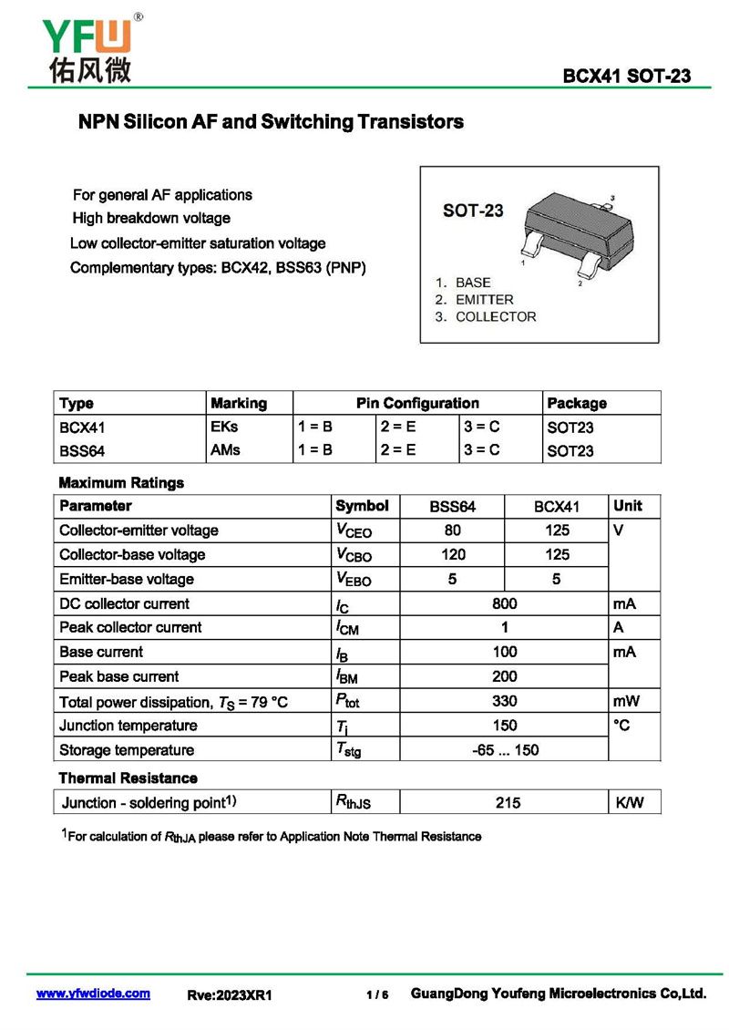 開關晶體管BCX41 規格書_價格_PDF手冊-廣東佑風微原廠BCX41 SOT-23_(YFW佑風微)品牌