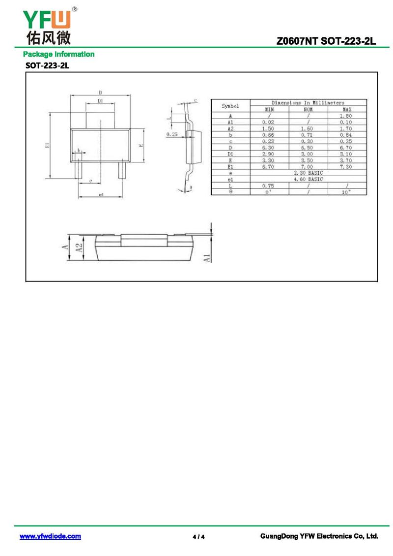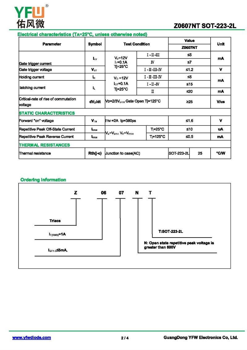 可控硅Z0607NT-4Q 規格書_價格_PDF手冊-廣東佑風微原廠Z0607NT-4Q SOT-223-2L_(YFW佑風微)品牌