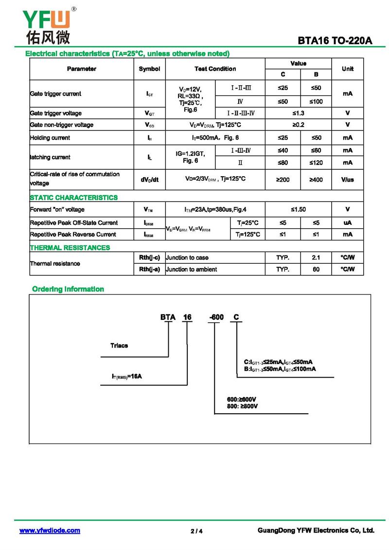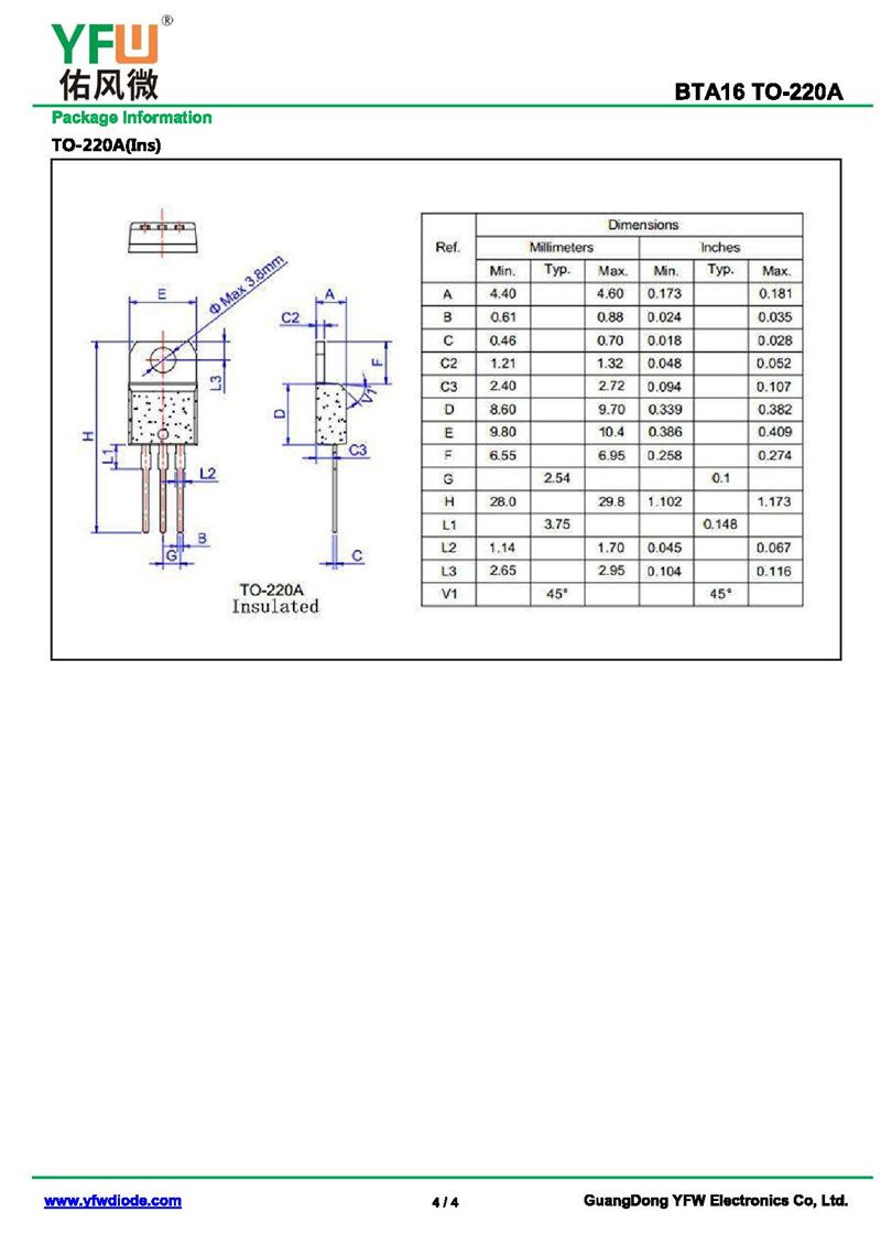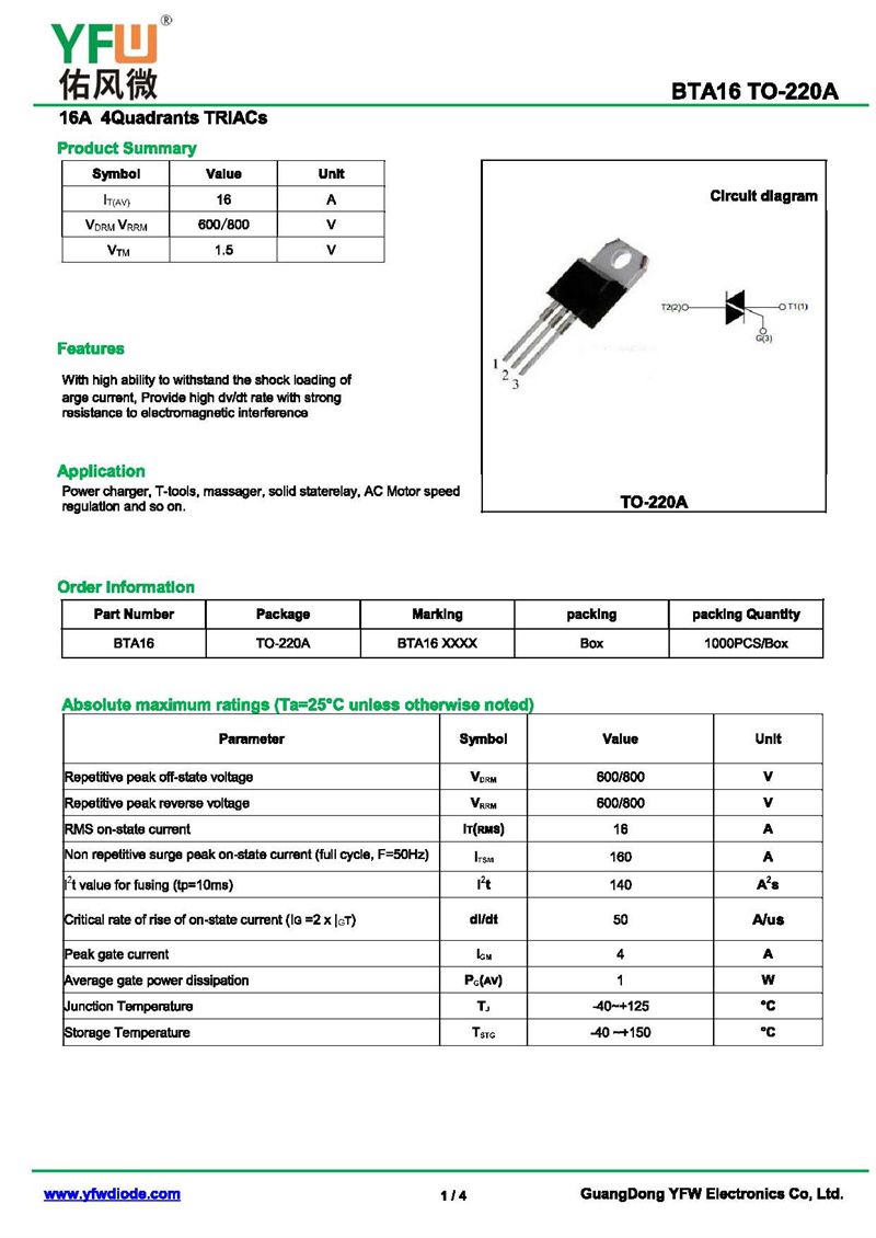 可控硅BTA16-4Q 規格書_價格_PDF手冊-廣東佑風微原廠BTA16-4Q TO-220A(YFW佑風微)品牌