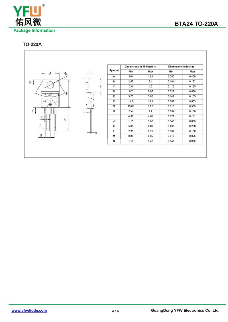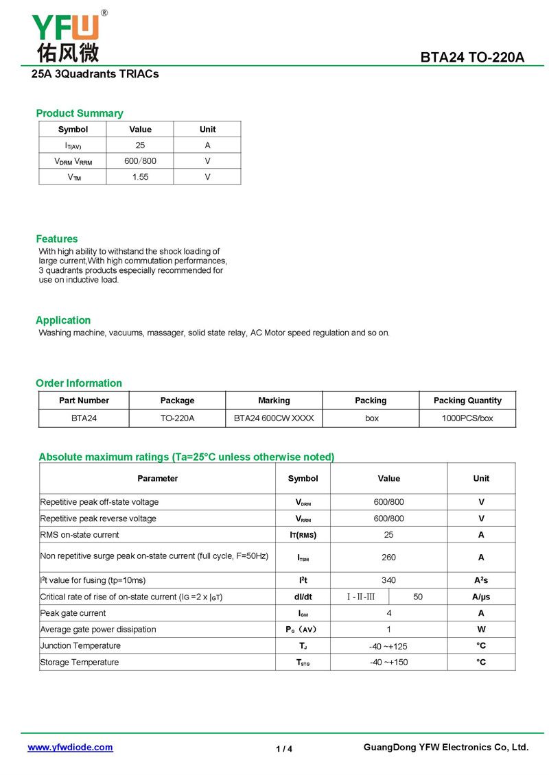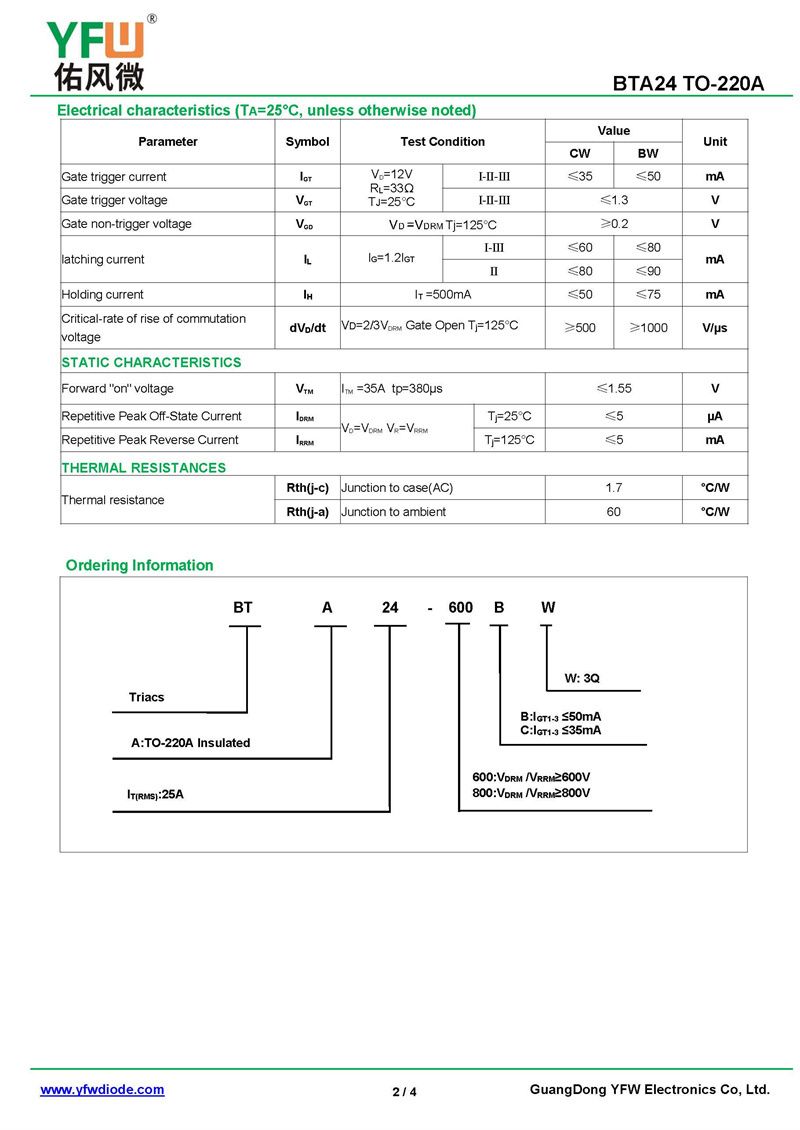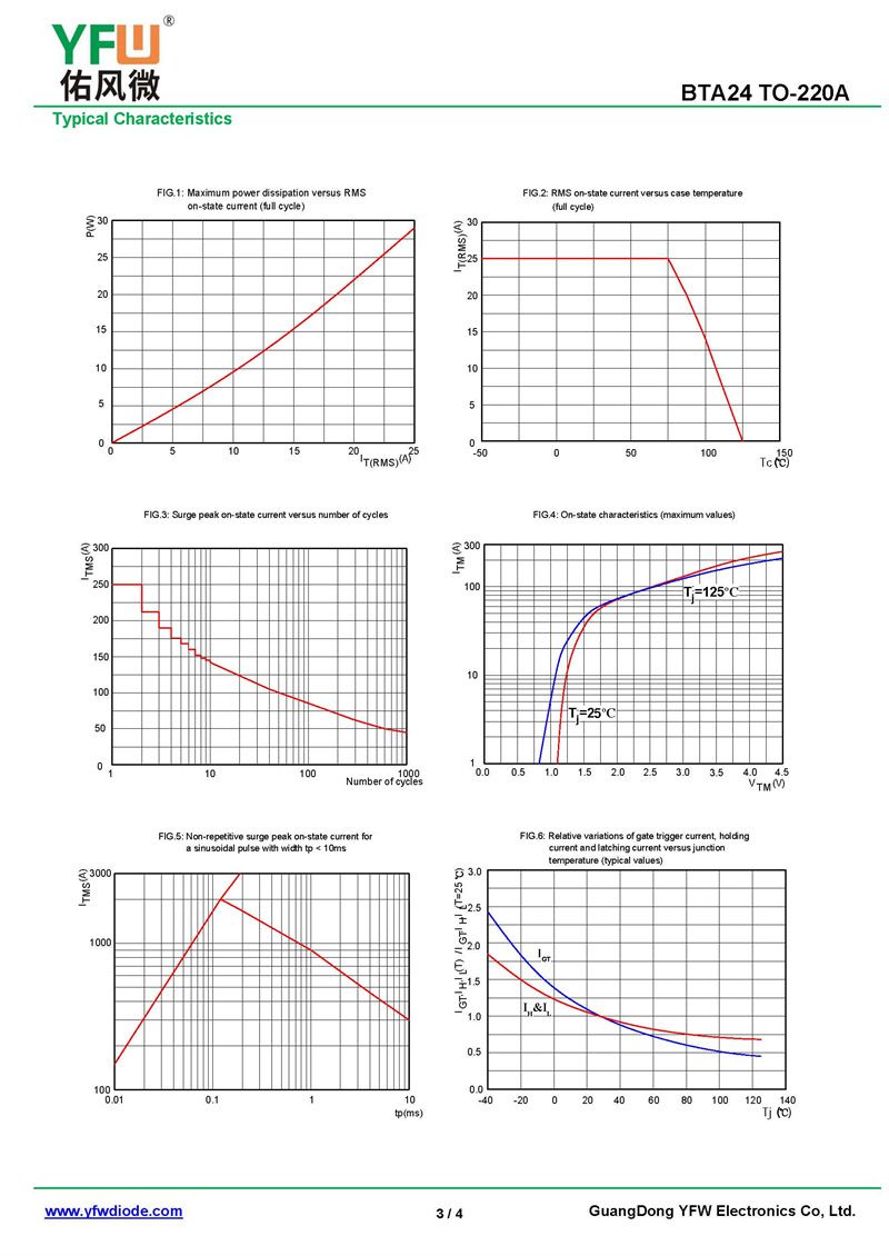 可控硅BTA24-3Q 規格書_價格_PDF手冊-廣東佑風微原廠BTA24-3Q TO-220A(YFW佑風微)品牌