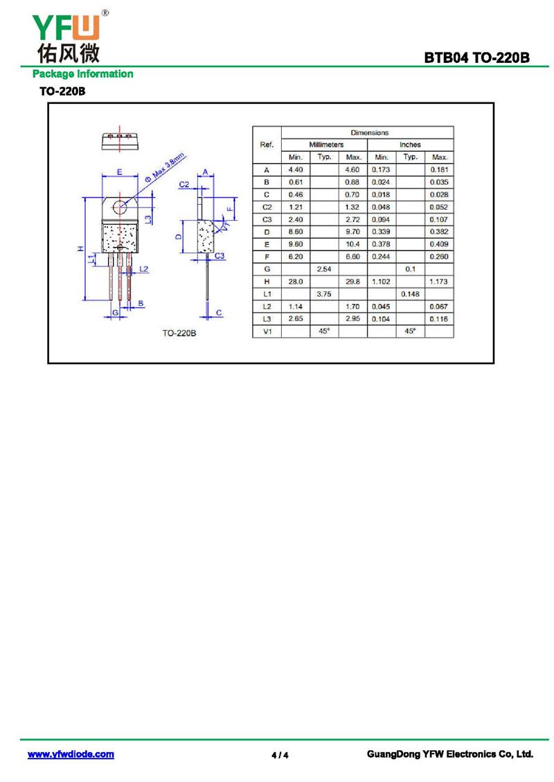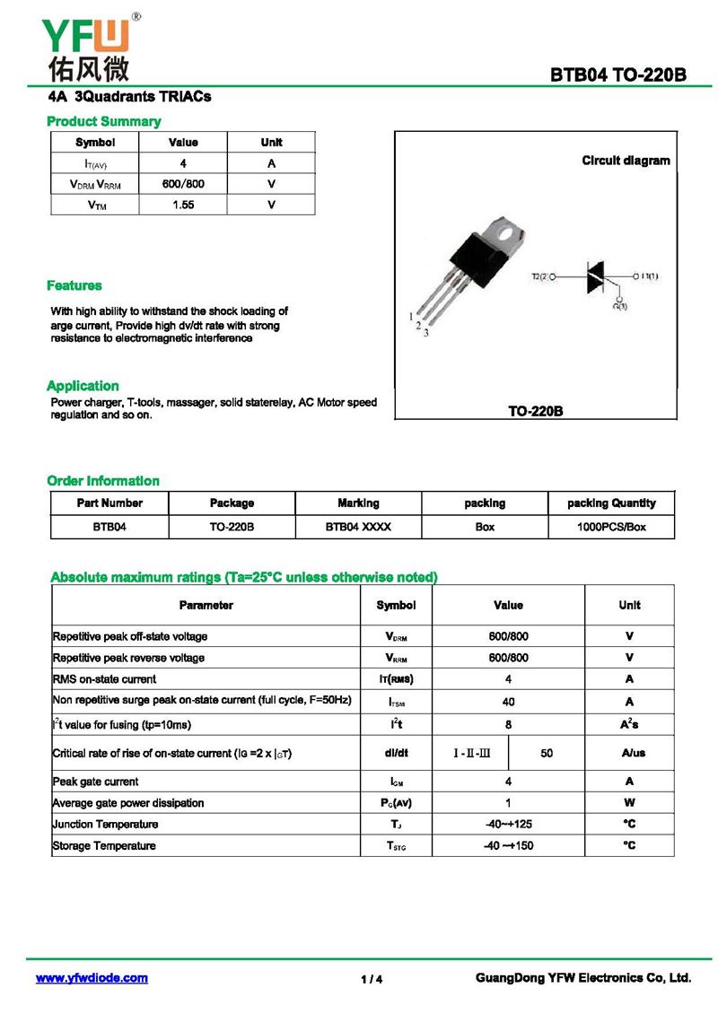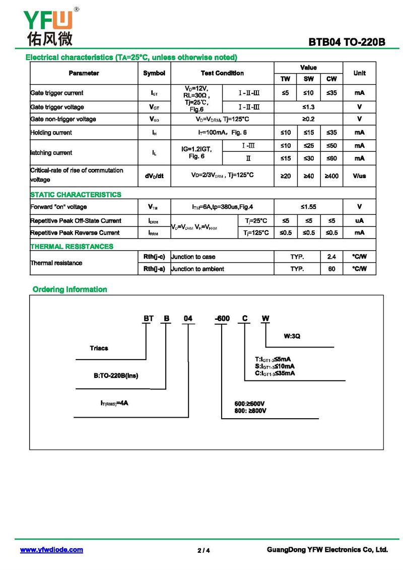可控硅BTB04-3Q 規格書_價格_PDF手冊-廣東佑風微原廠BTA24-3Q TO-220B(YFW佑風微)品牌