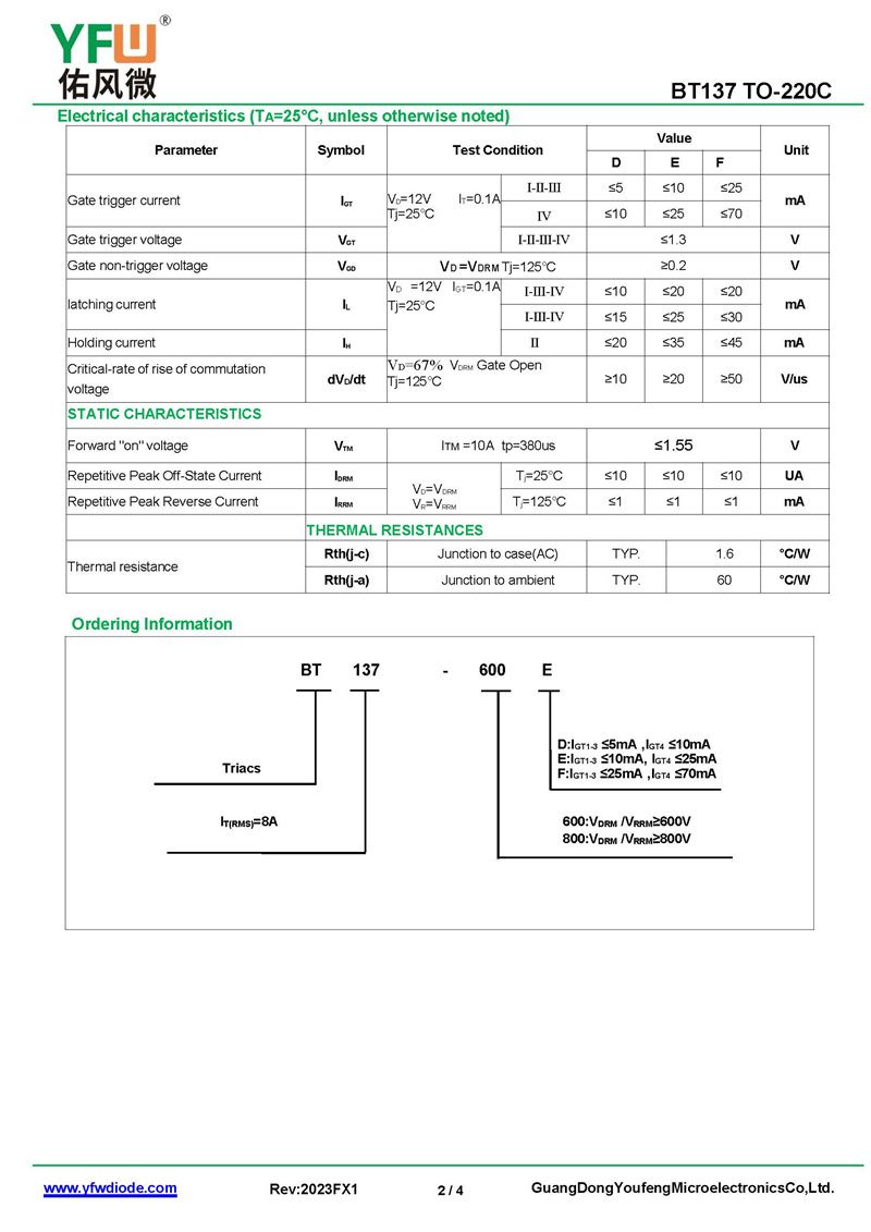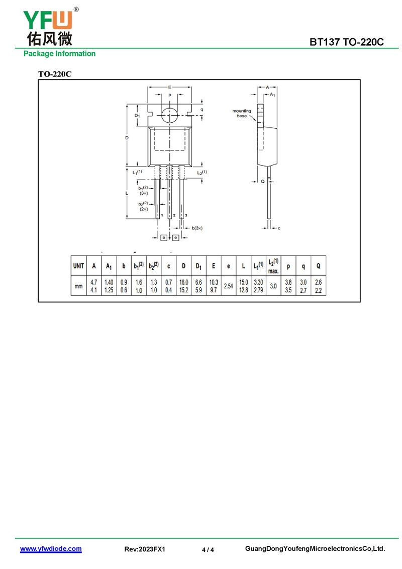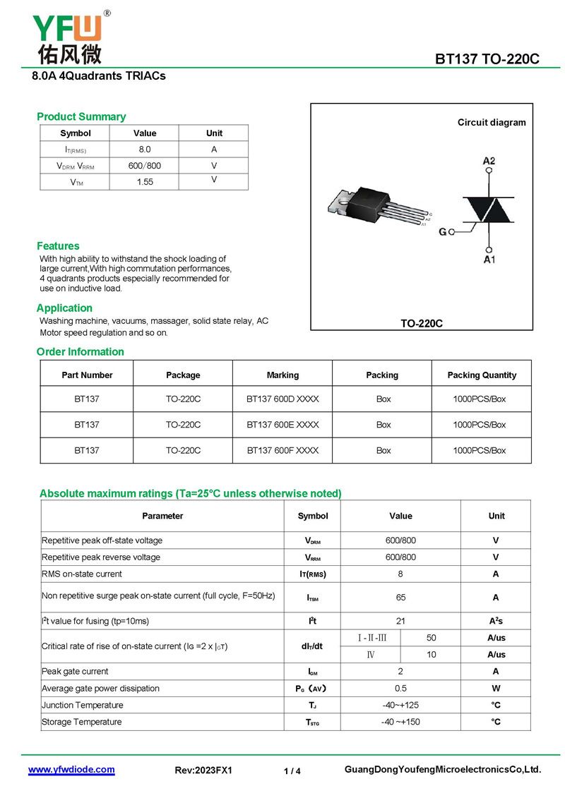可控硅BT137-4Q 規(guī)格書_價格_PDF手冊-廣東佑風(fēng)微原廠BT137-4Q TO-220C(YFW佑風(fēng)微)品牌
