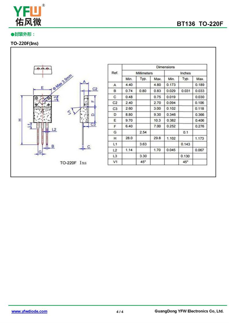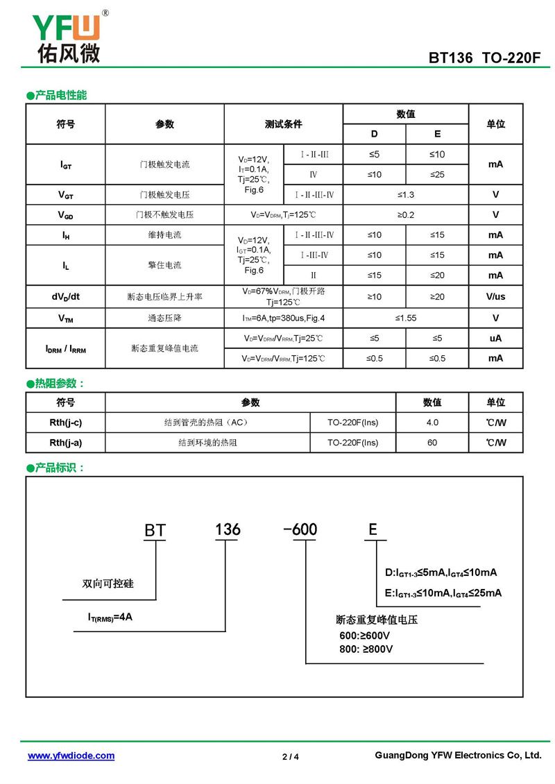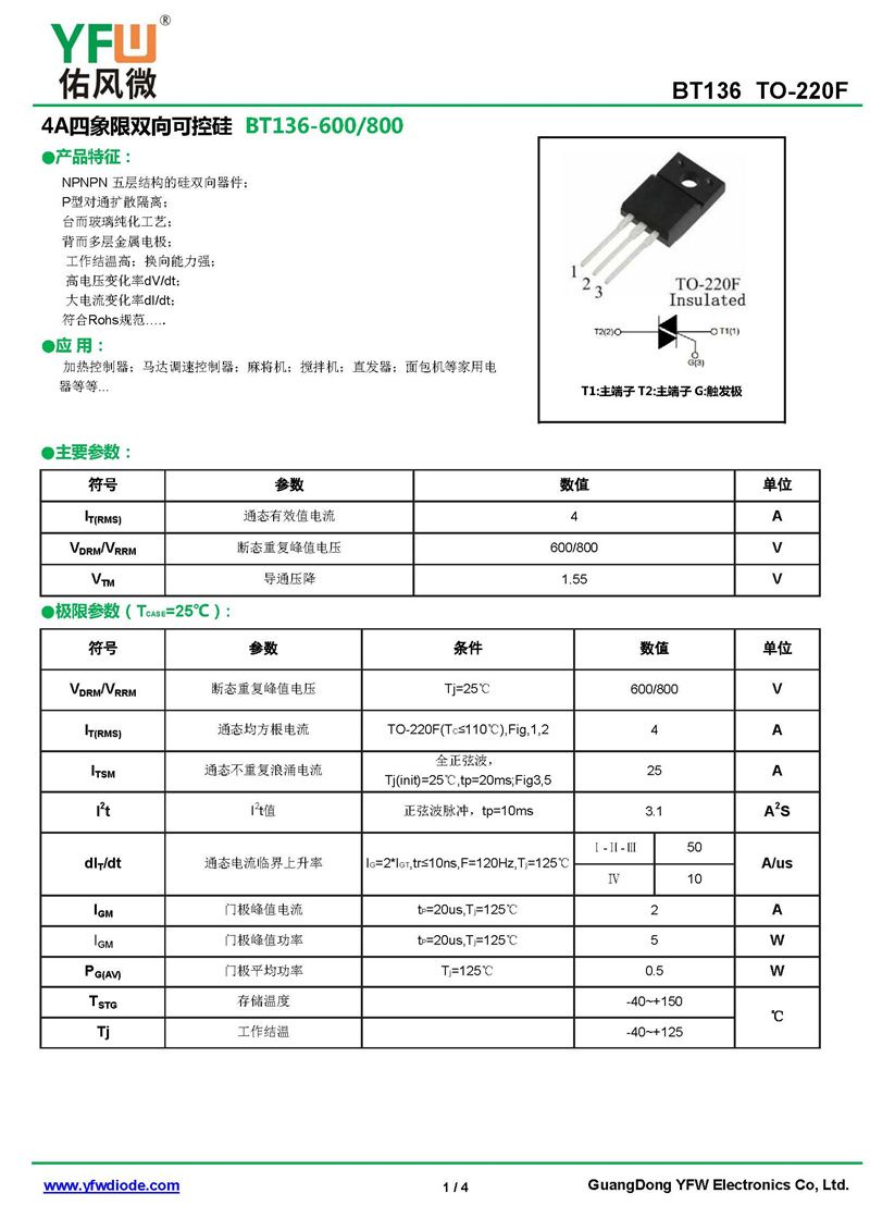 可控硅BT136-4Q 規格書_價格_PDF手冊-廣東佑風微原廠BT136-4Q TO-220F(YFW佑風微)品牌