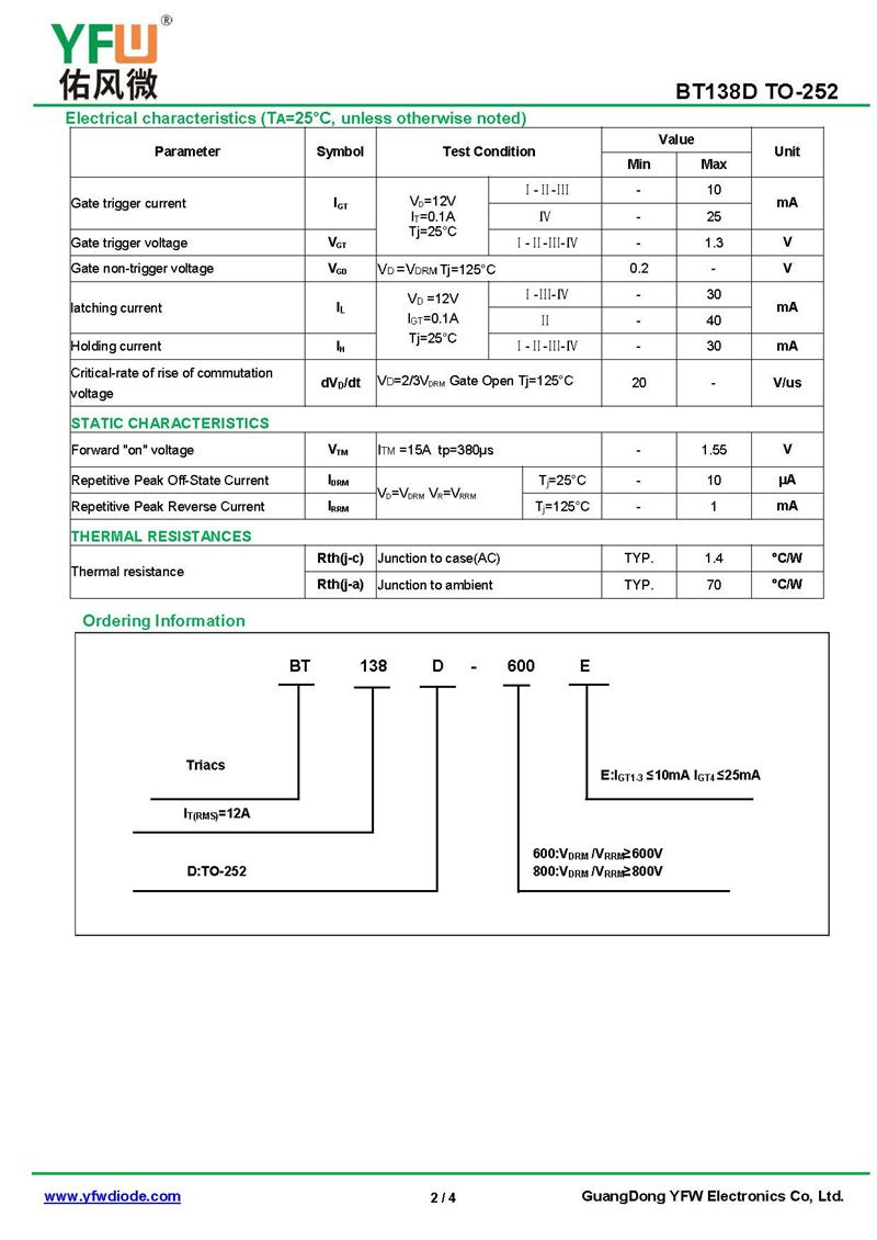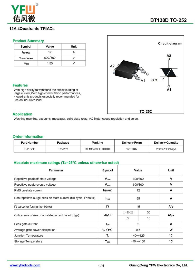 可控硅BT138D-4Q 規(guī)格書(shū)_價(jià)格_PDF手冊(cè)-廣東佑風(fēng)微原廠BT138D-4Q TO-252(YFW佑風(fēng)微)品牌