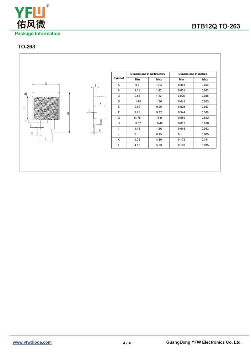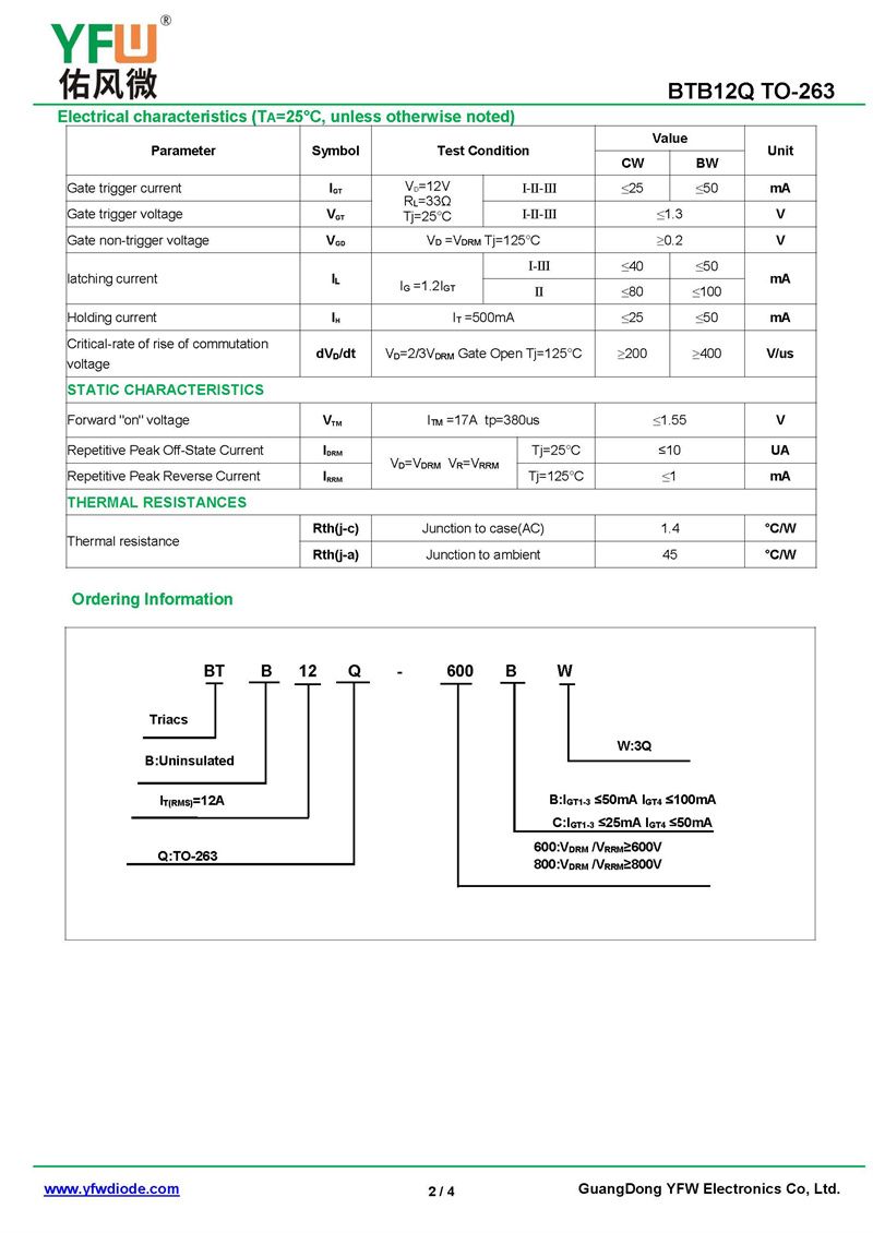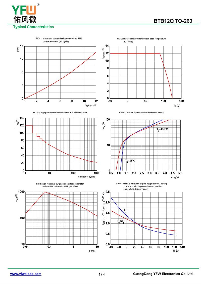 可控硅BTB12Q-3Q 規格書_價格_PDF手冊-廣東佑風微原廠BTB12Q-3Q TO-263(YFW佑風微)品牌