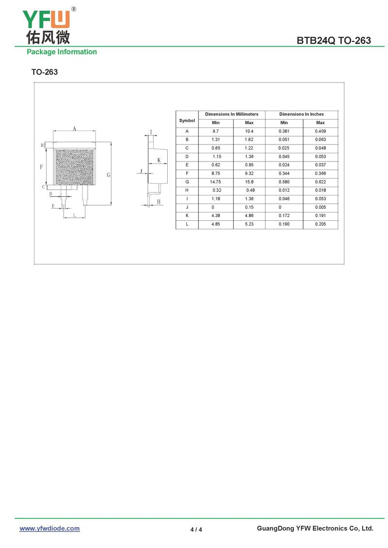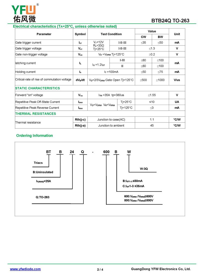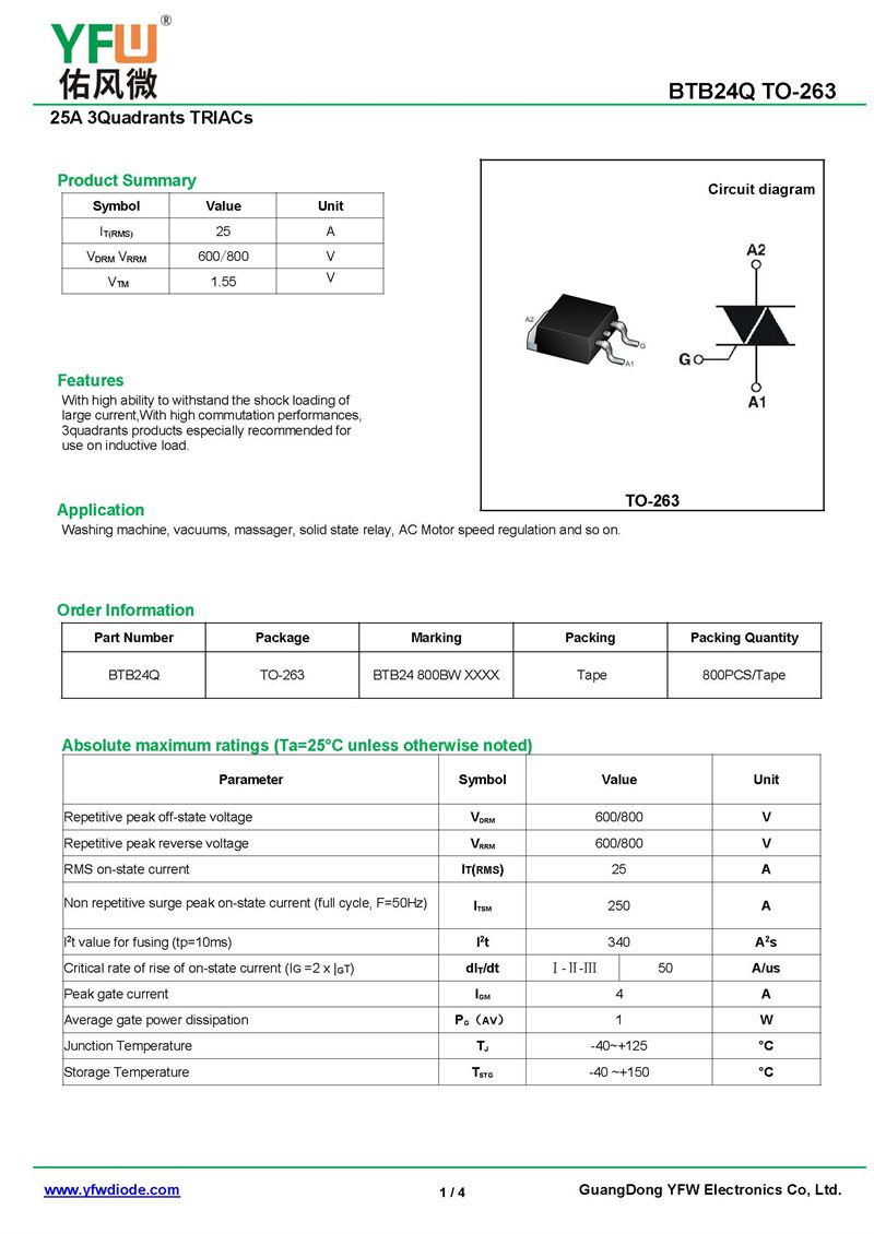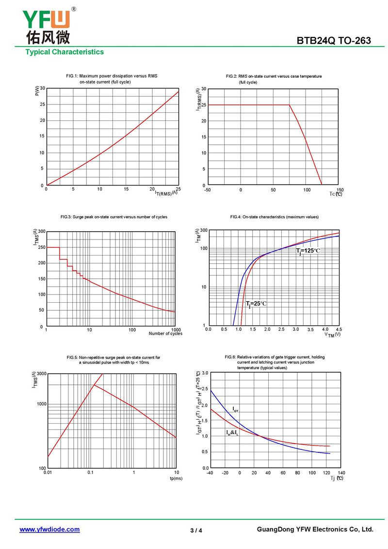 可控硅BTB24Q-3Q 規格書_價格_PDF手冊-廣東佑風微原廠BTB24Q-3Q TO-263(YFW佑風微)品牌