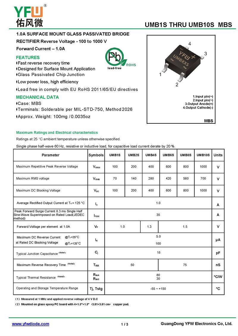 快恢復橋式整流器UMB8S 規(guī)格書_價格_PDF手冊-廣東佑風微原廠UMB8S MBS(YFW佑風微)品牌