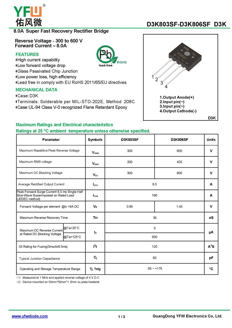 橋式整流器D3K803SF 規(guī)格書_價格_PDF手冊-廣東佑風微原廠D3K803SF D3K(YFW佑風微)品牌