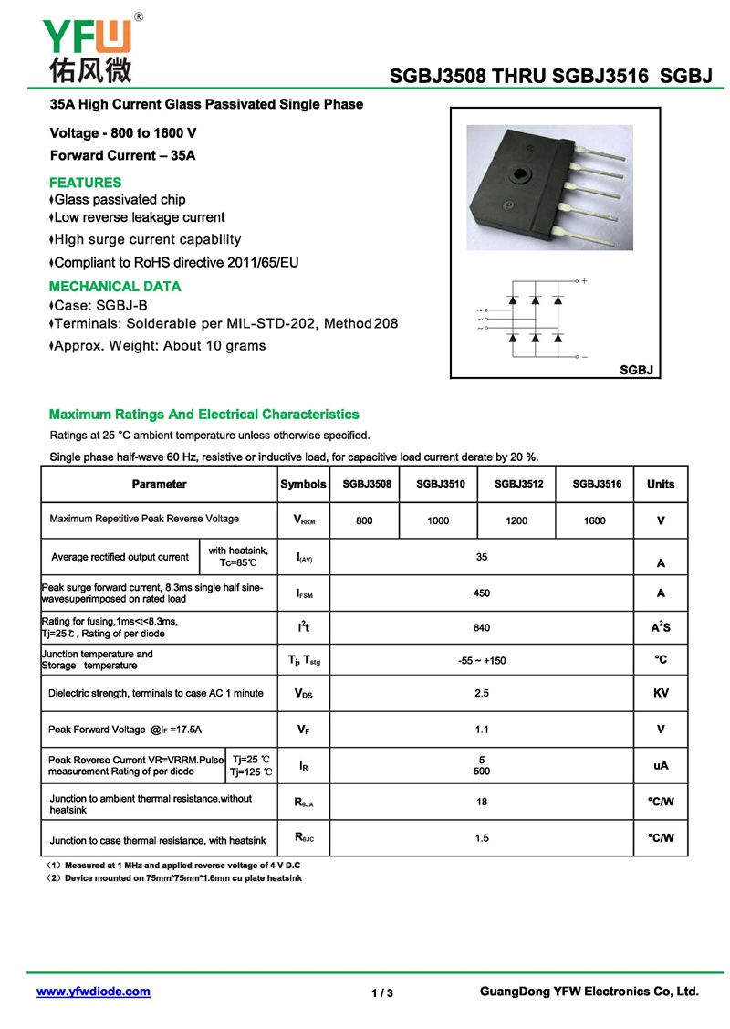 橋式整流器SGBJ3508B 規格書_價格_PDF手冊-廣東佑風微原廠SGBJ3508B SGBJYFW佑風微)品牌
