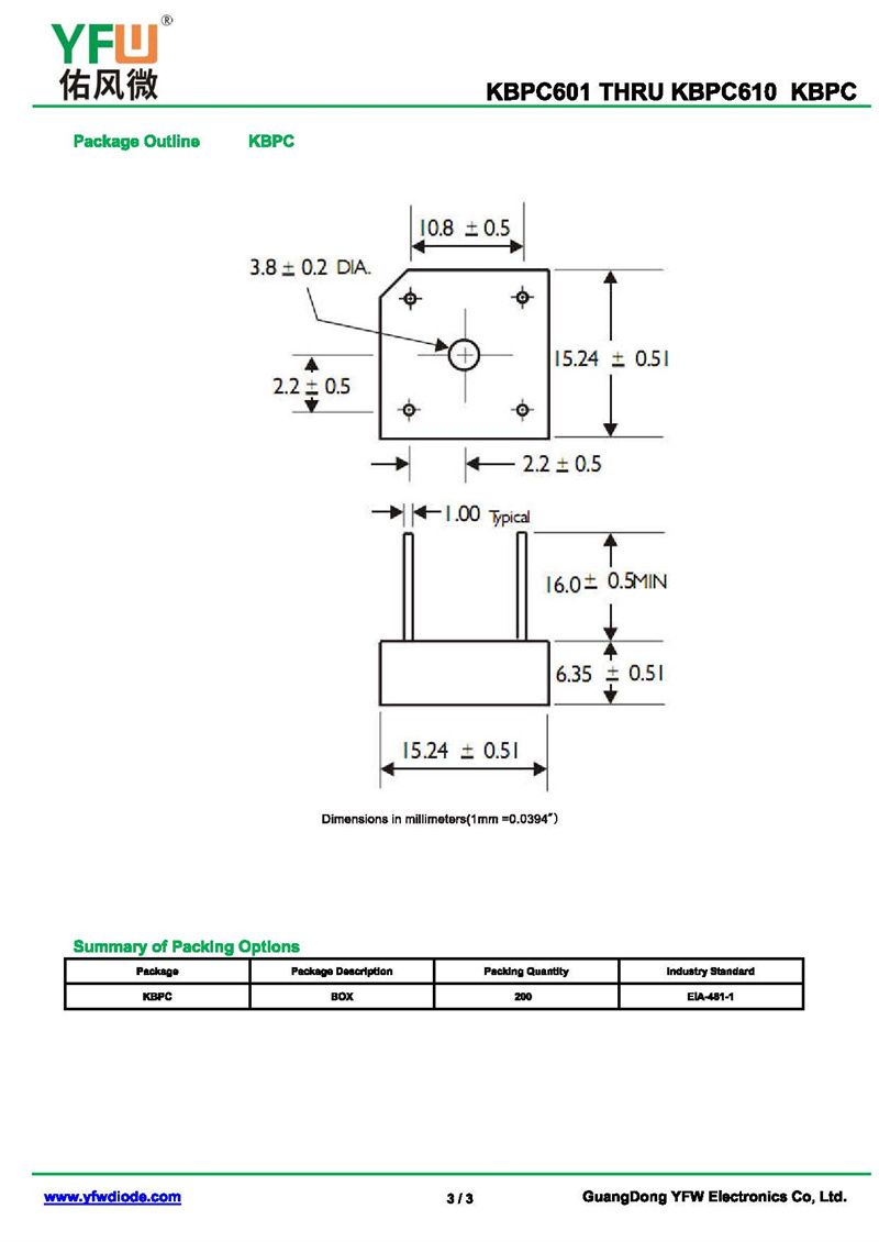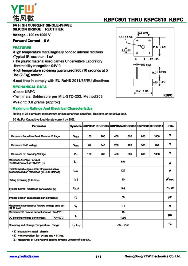 橋式整流器KBPC606 規格書_價格_PDF手冊-廣東佑風微原廠KBPC606 KBPC/KBPC-WYFW佑風微)品牌