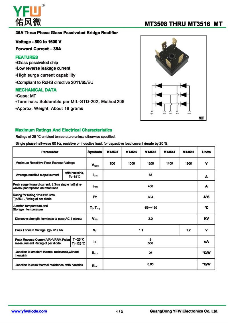 橋式整流器MT3512 規格書_價格_PDF手冊-廣東佑風微原廠MT3512 SKBPC(佑風微)品牌