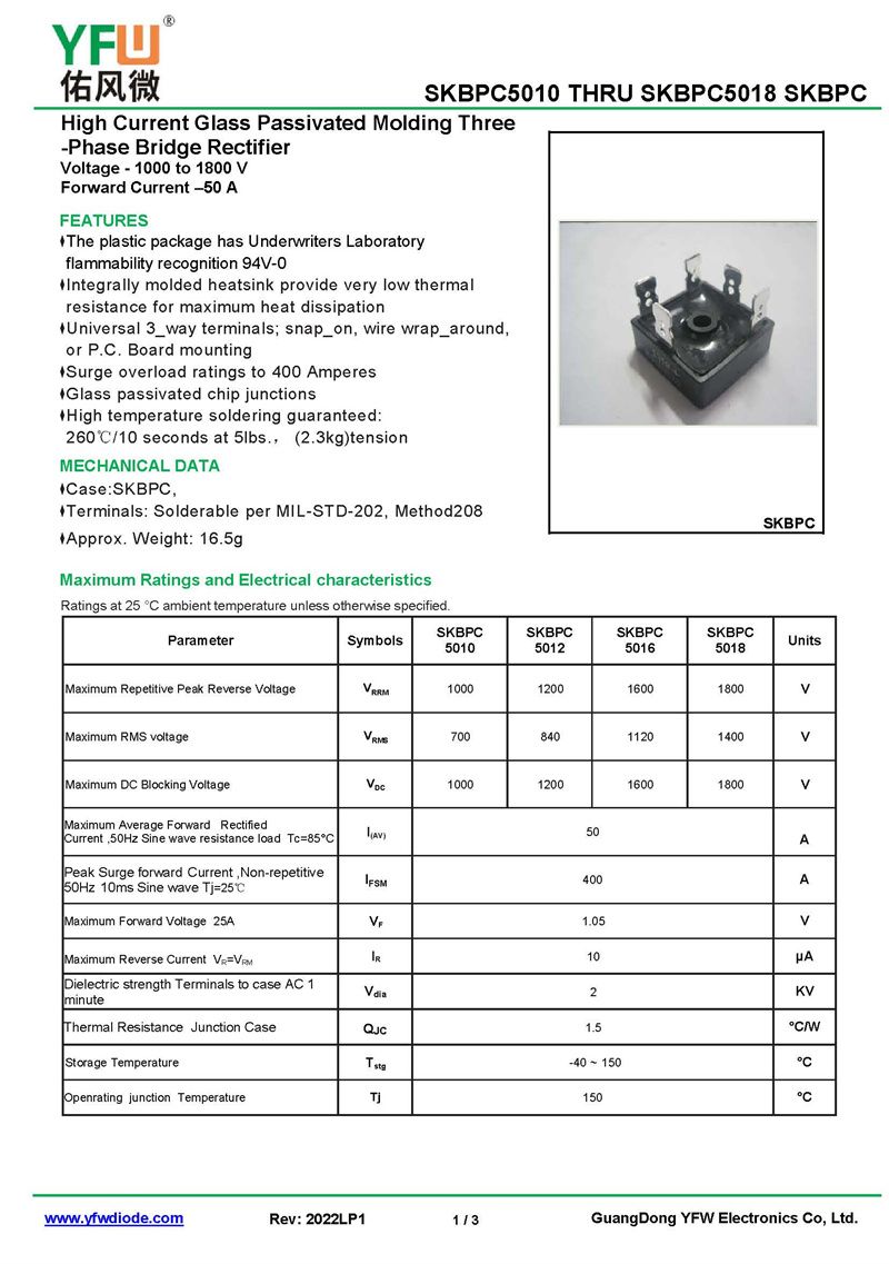 橋式整流器SKBPC5016 規格書_價格_PDF手冊-廣東佑風微原廠SKBPC5016 SKBPC(佑風微)品牌