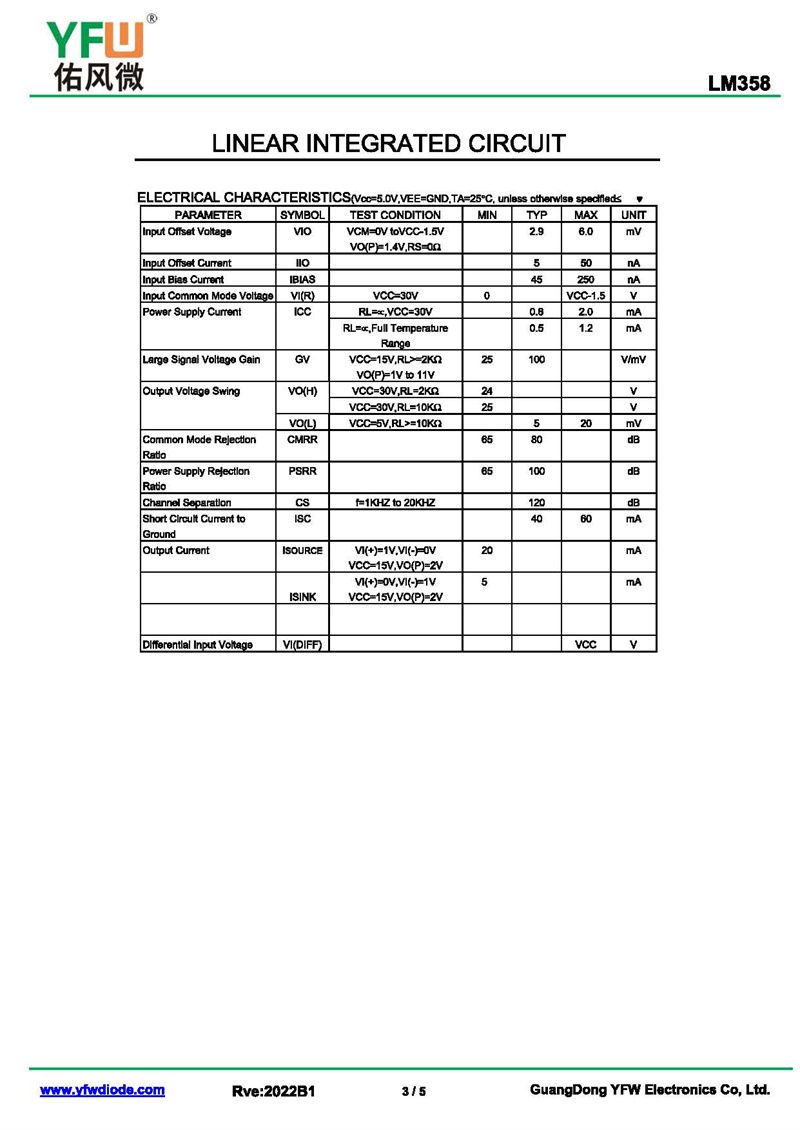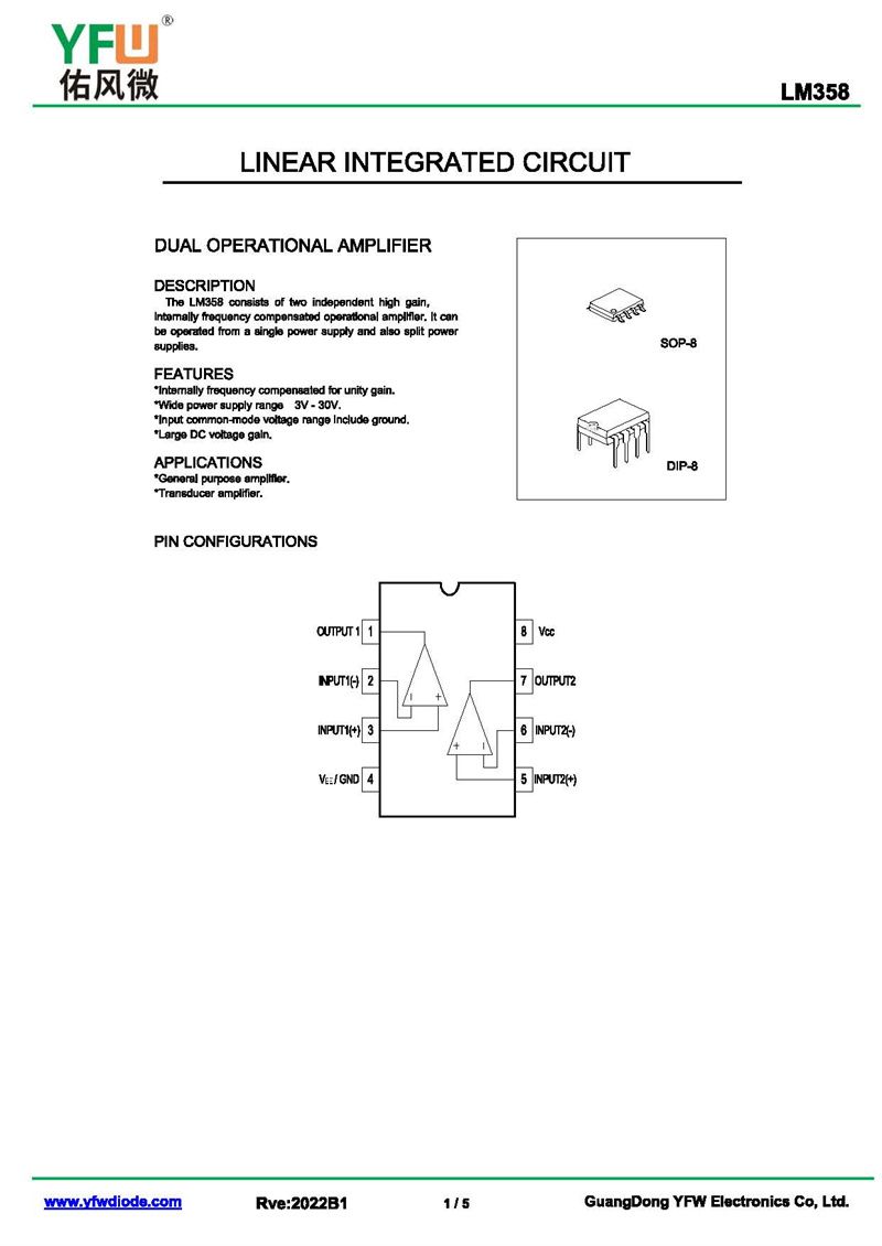 雙運算放大器LM358 規格書_價格_PDF手冊-廣東佑風微原廠LM358 SOP-8(佑風微)品牌