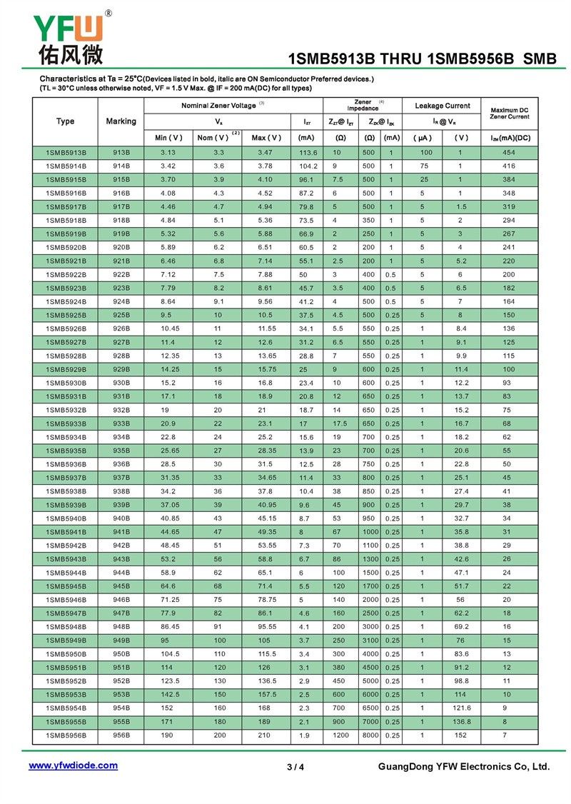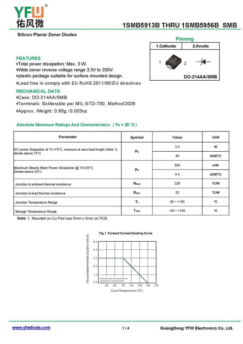 穩壓二極管1SMB5954B 規格書_價格_PDF手冊-廣東佑風微原廠1SMB5954B SMB(佑風微)品牌
