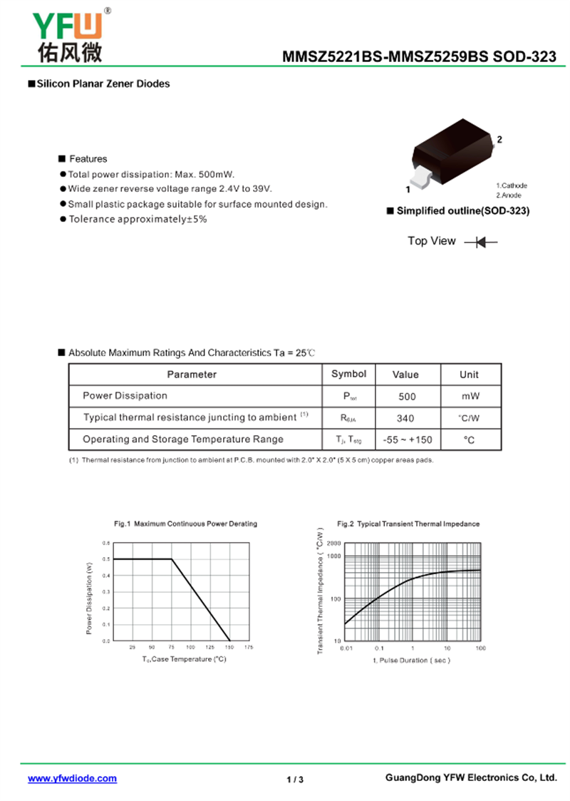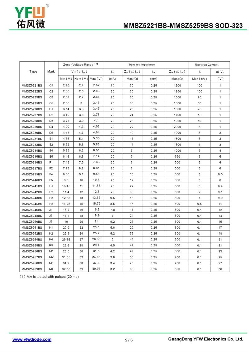 穩壓二極管MMSZ5246BS 規格書_價格_PDF手冊-廣東佑風微原廠MMSZ5246BS SOD-323(佑風微)品牌