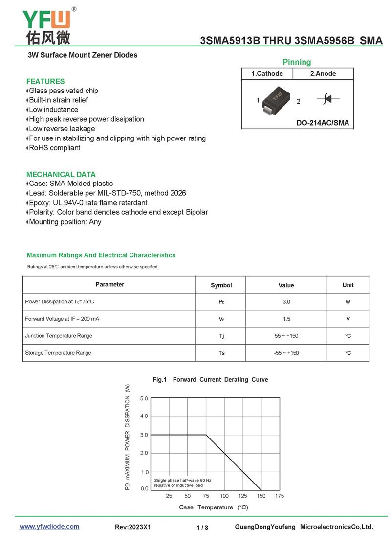 穩壓二極管3SMAJ5931B 規格書_價格_PDF手冊-廣東佑風微原廠3SMAJ5931B SMA(佑風微)品牌
