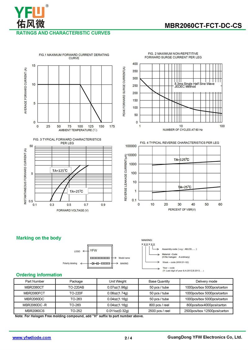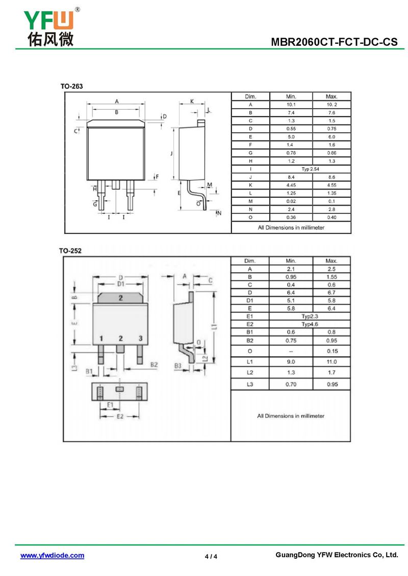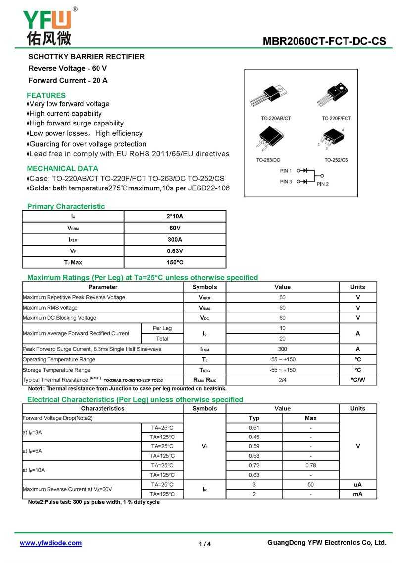肖特基二極管MBR2060DT 規格書_價格_PDF手冊-廣東佑風微原廠MBR2060DT TO-252(佑風微)品牌