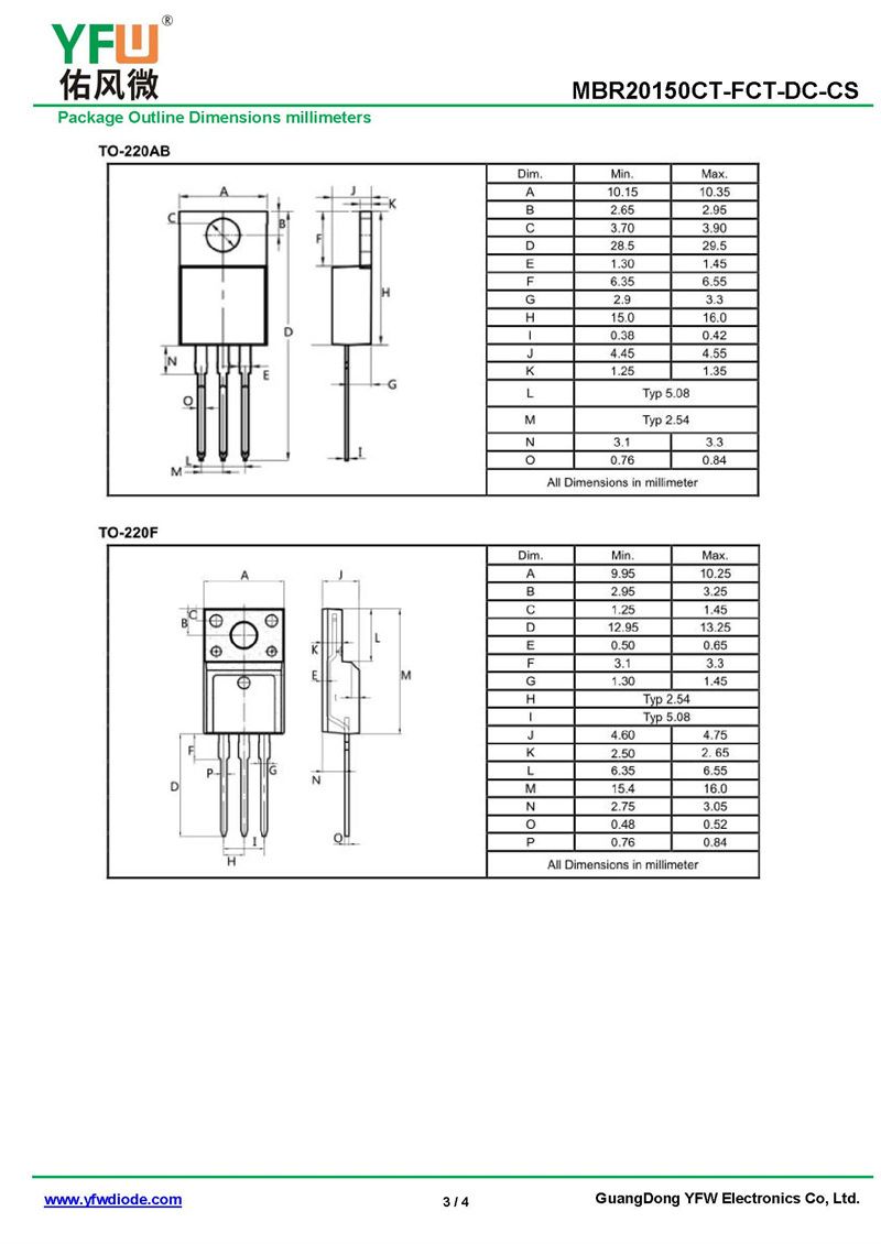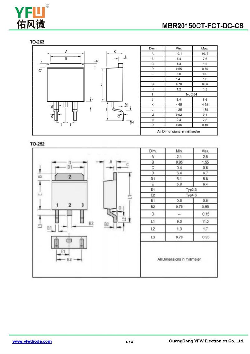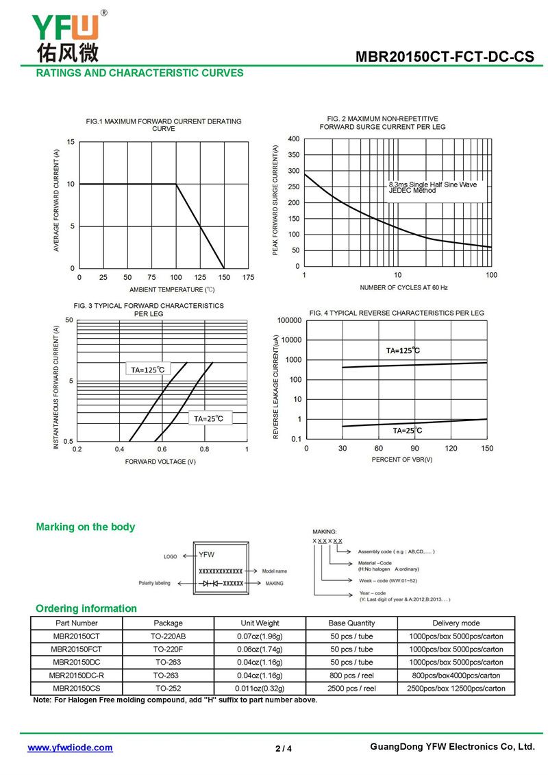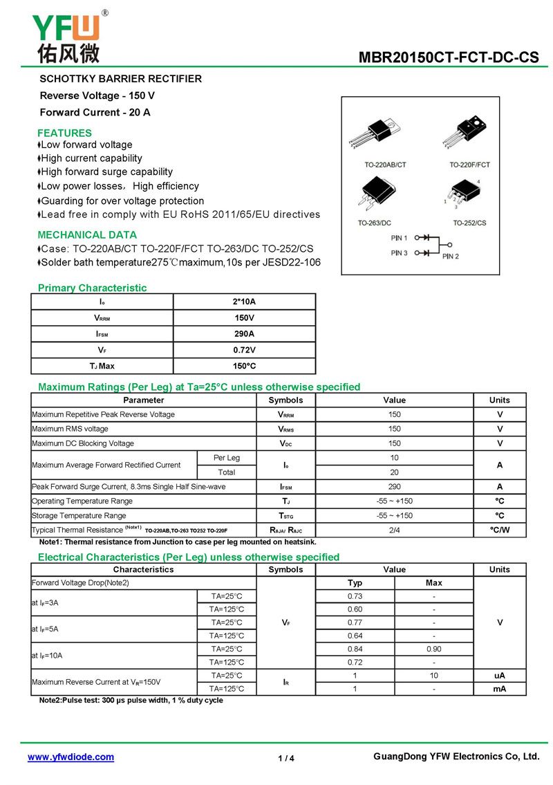 肖特基二極管MBR20150DT 規格書_價格_PDF手冊-廣東佑風微原廠MBR20150DT TO-252(佑風微)品牌