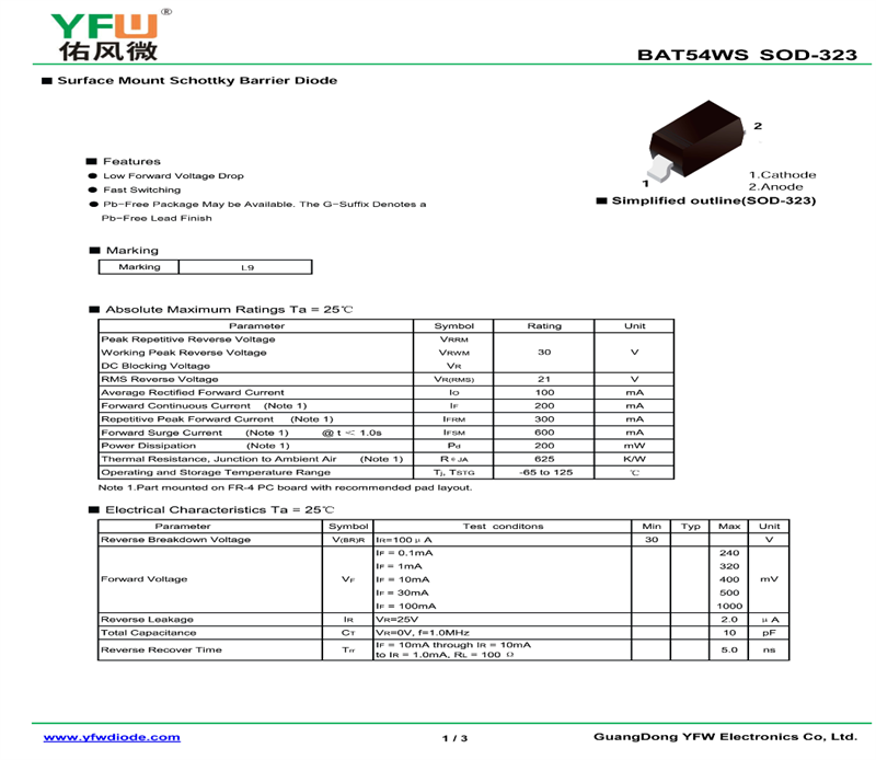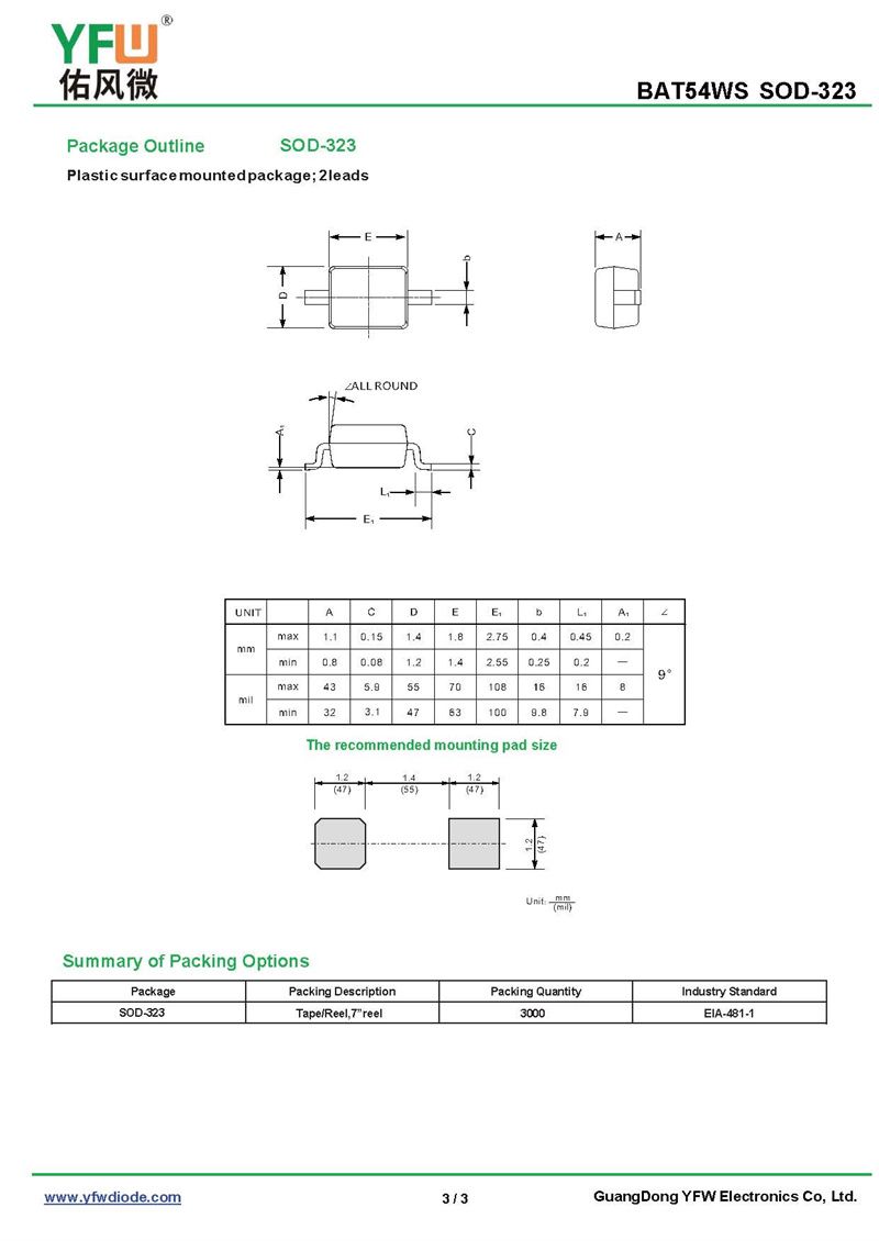 肖特基二極管BAT54WS 規(guī)格書_價格_PDF手冊-廣東佑風微原廠BAT54WS SOD-323(佑風微)品牌